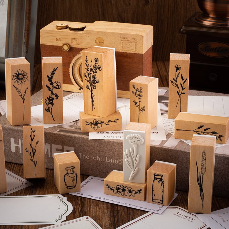 วินเทจไม ้ แสตมป ์ ยางพืชดอกไม ้ ตกแต ่ งติดตั ้ งแสตมป ์ ยางชุดสําหรับ DIY หัตถกรรมไดอารี ่ และหัตถกรรม Scrapbooking