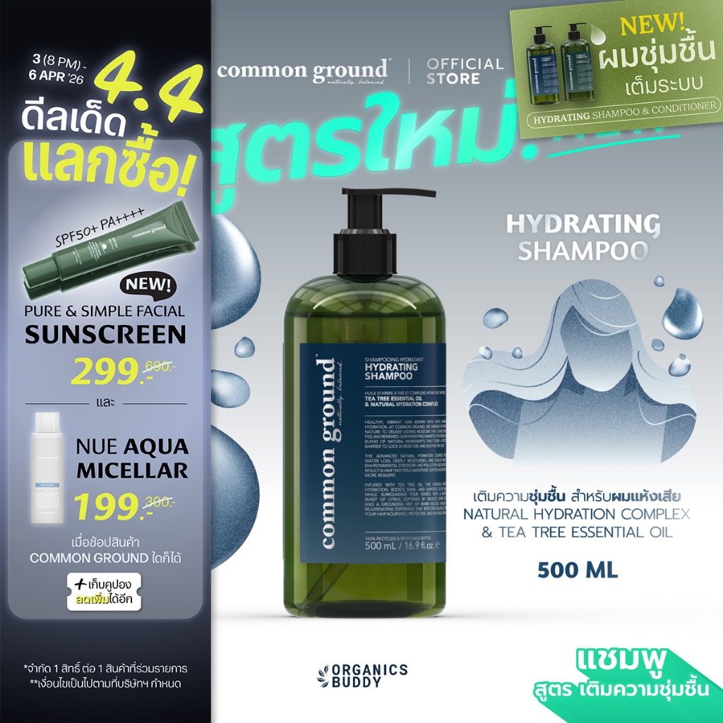 Common Ground Hydrating Shampoo แชมพู Tea Tree Essential Oil สูตรเติมความชุ่มชื้น ผมนุ่มลื่น 500mL