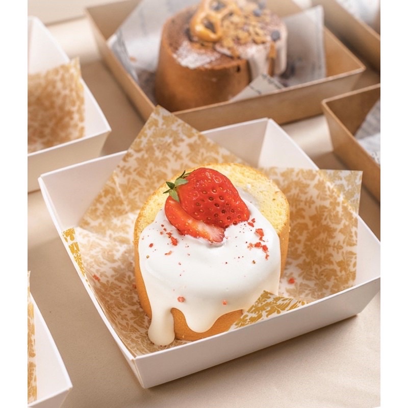 กล่องเค้ก+ฝาใส กล่องคุกกี้ กล่องขนม สไตล์เกาหลีพร้อมฝาเคลือบด้านใน ขนาด 1/4ปอนด์