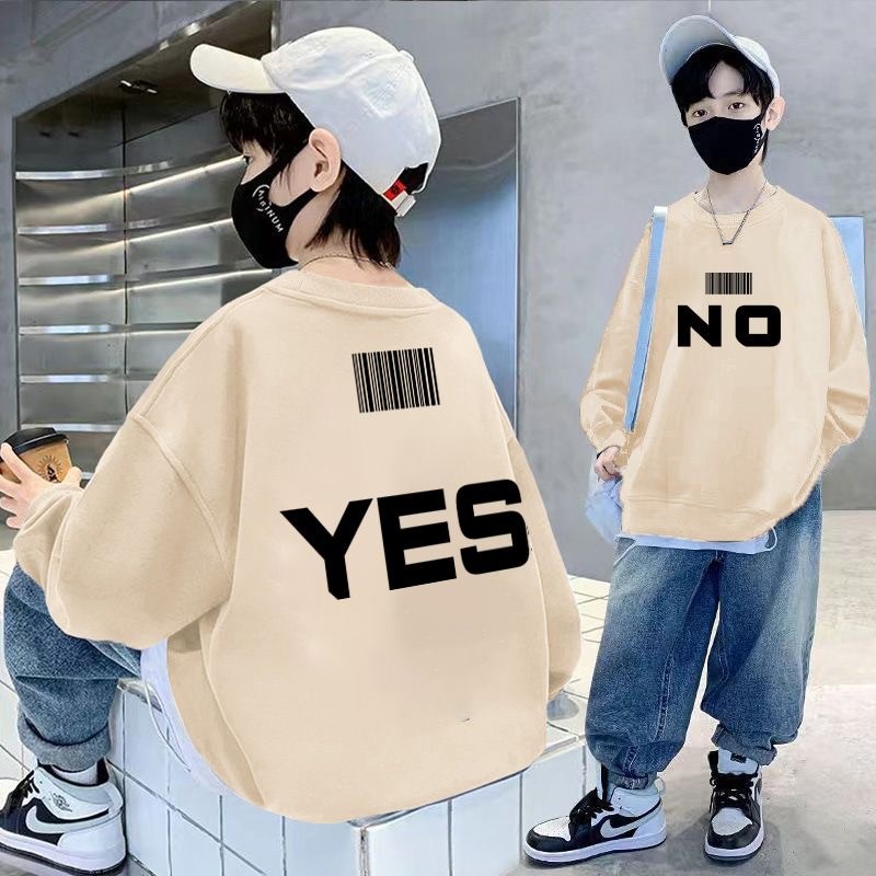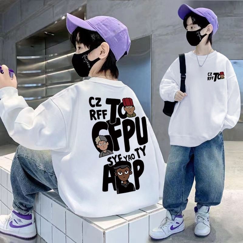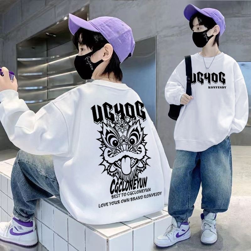 จัดส่งภายใน 24 ชั่วโมง เสื้อสเวตเตอร์เด็กผู้ชาย 2026 สไตล์ใหม่สำหรับฤดูใบไม้ผลิและใบไม้ร่วง ไซส์ใหญ่ พิมพ์ลายบนผ้าฝ้ายแท้แขนยาว
