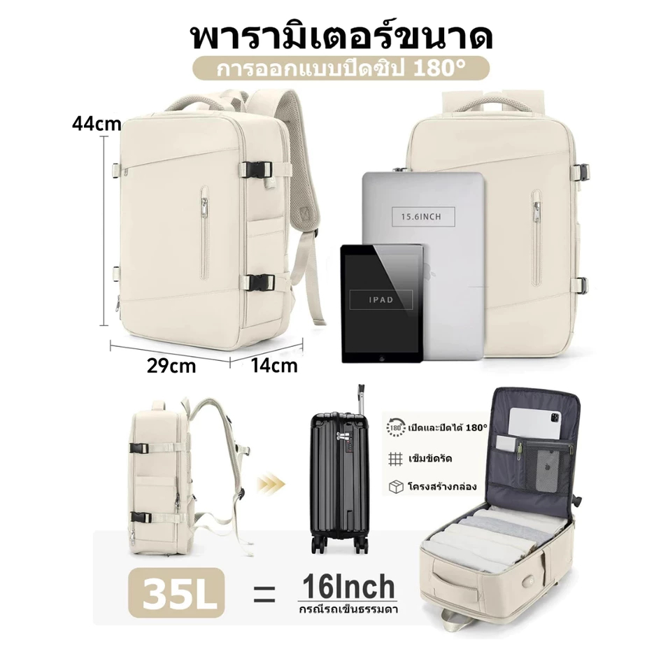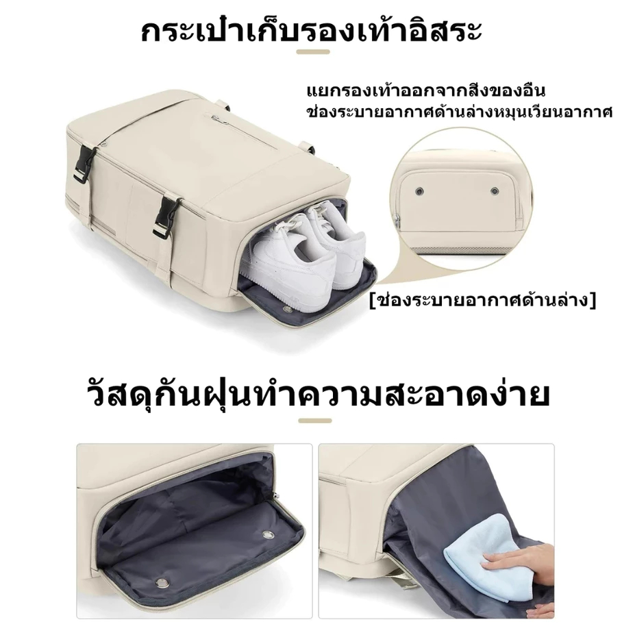 กระเป๋าเป้สะพายหลังท่องเที่ยว 35L มีกระเป๋ารองเท้าอิสระและพอร์ตชาร์จ ความจุขนาดใหญ่ TRAVEL BAG