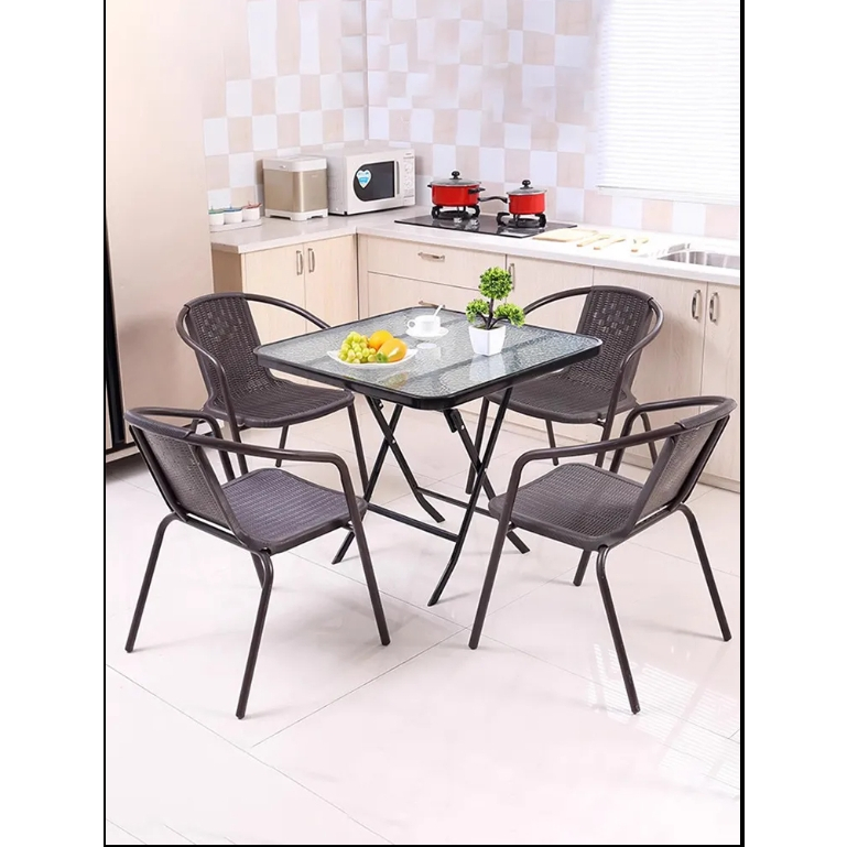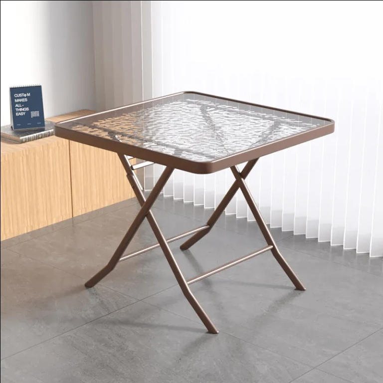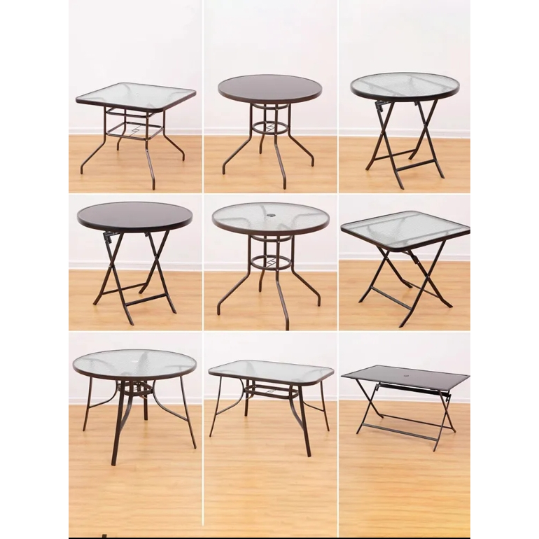 กลางแจ้งพับกระจกโต๊ะกลมโต๊ะรับประทานอาหารระเบียงโต๊ะกาแฟขนาดเล็กเปิดโล่งแผงแบบพกพาตาราง