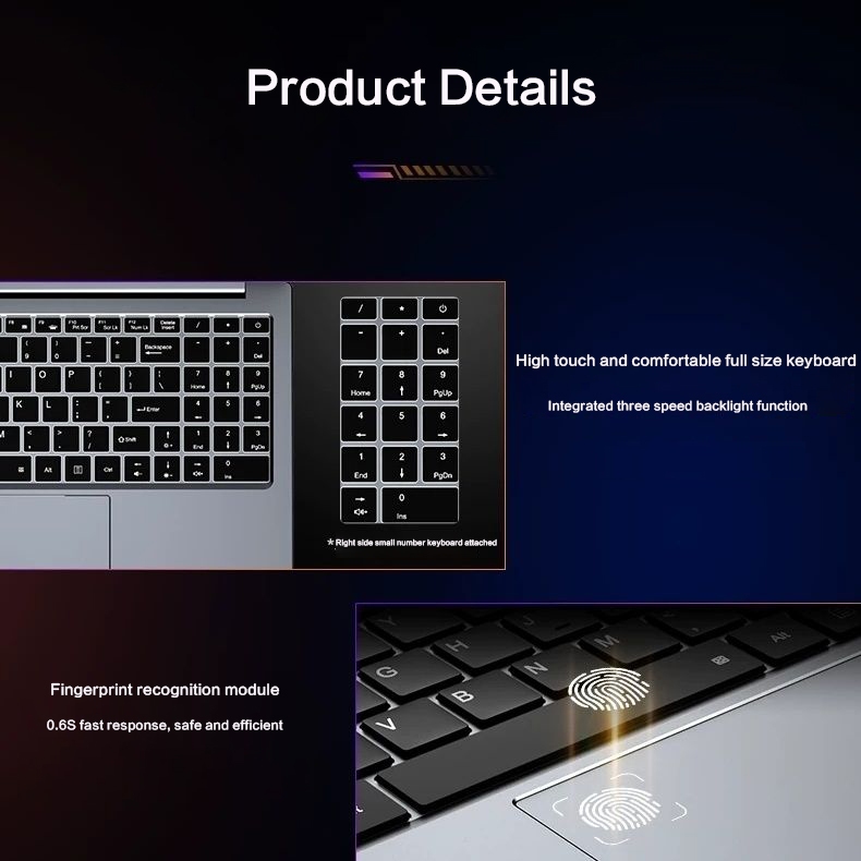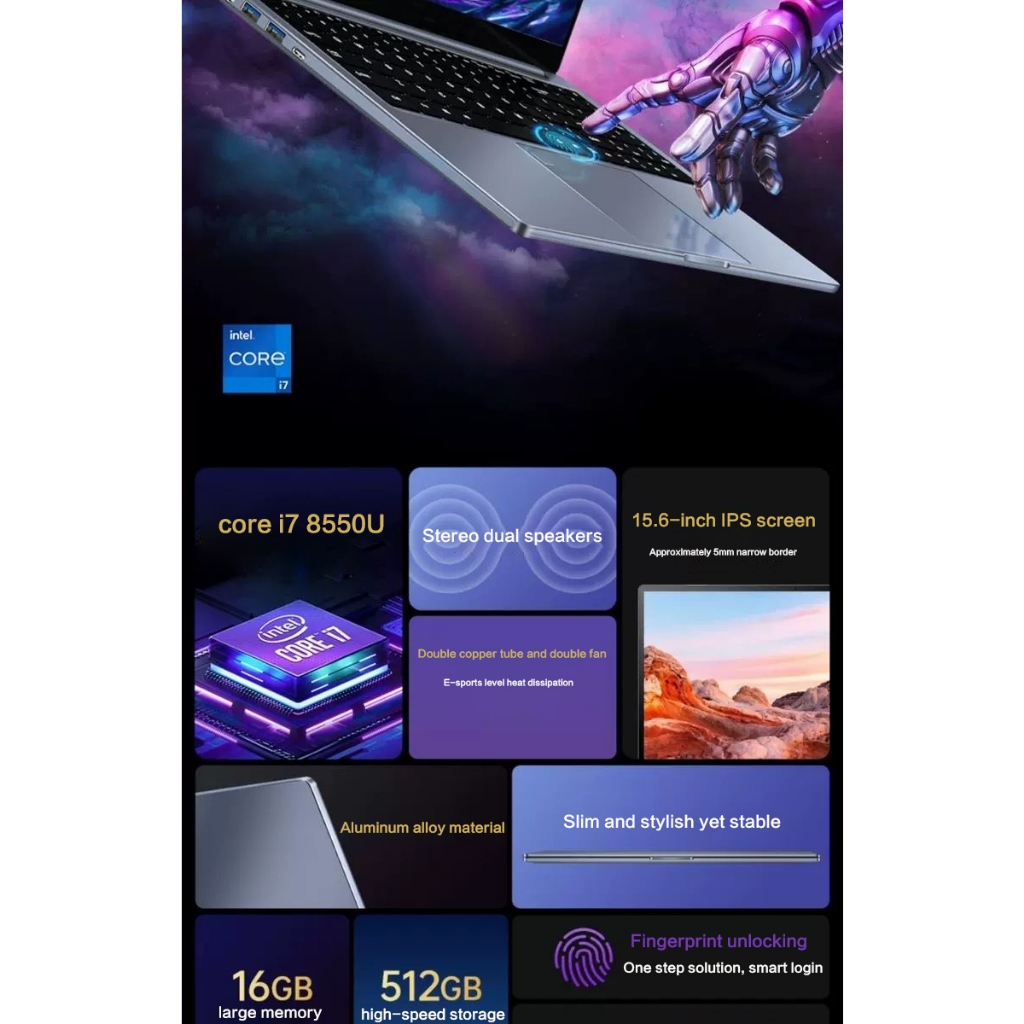 Intel Core i7 laptop 16G RAM 512 SSD HD กราฟิกแล็ปท็อปสำหรับเล่นเกม 15.6 นิ้ว IPS ลายนิ้วมือปลดล็อกหน้าจอมาตรฐาน