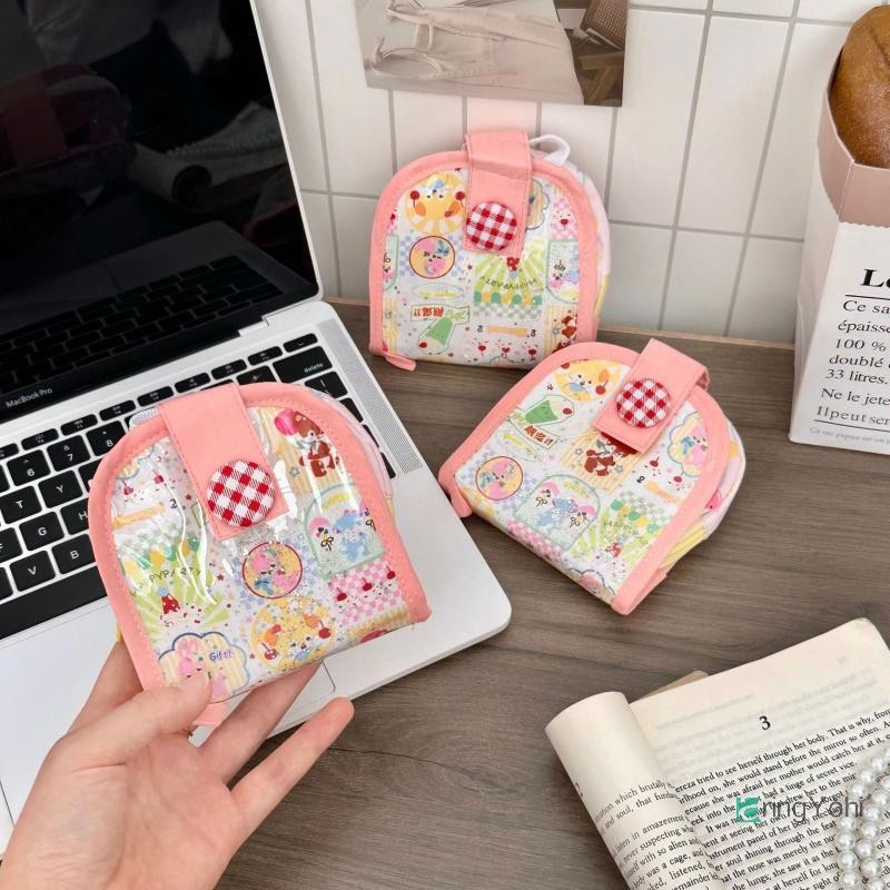 AringYohi] Dopamine Summer Multi-layer Card Holder Portable Storage Bag Cartoon Designpact Women Wallet ใหม่