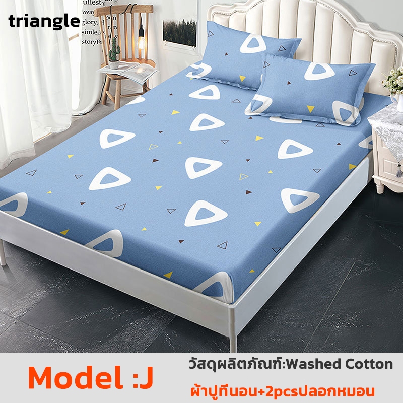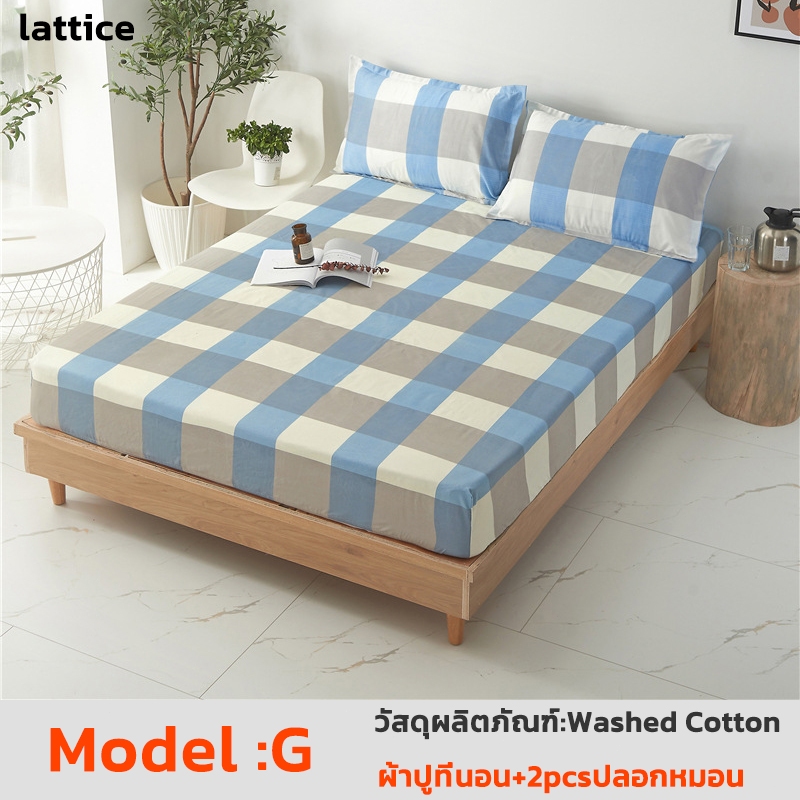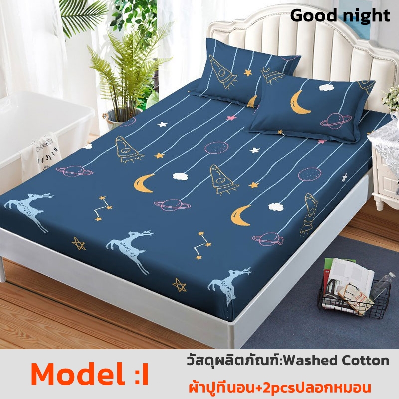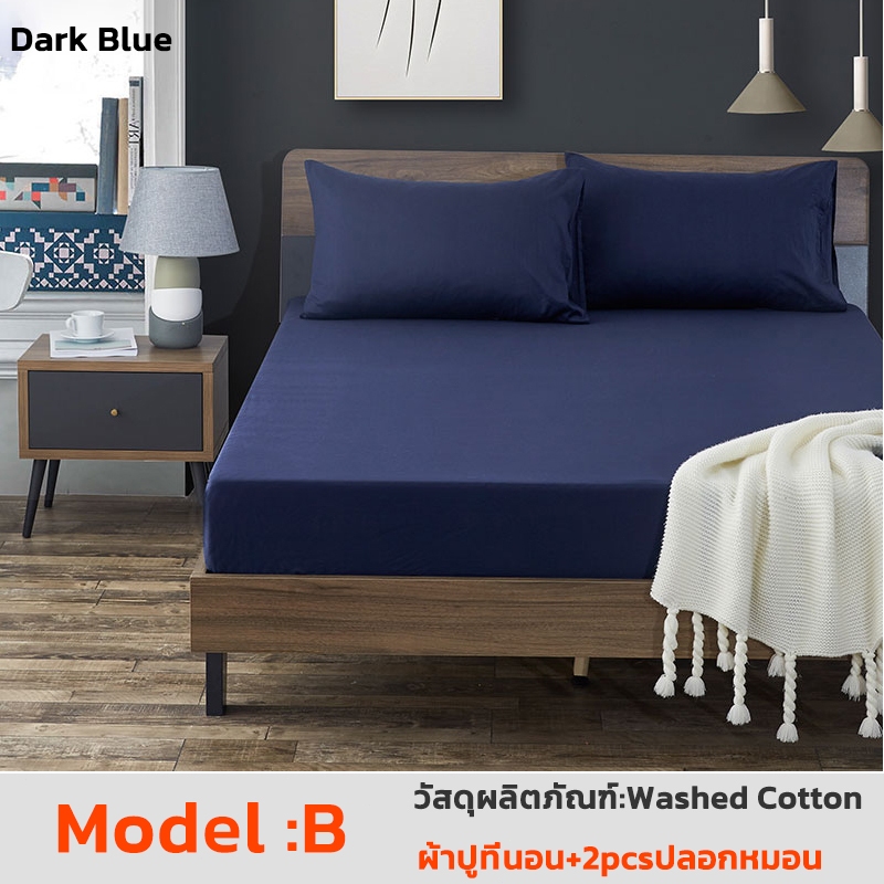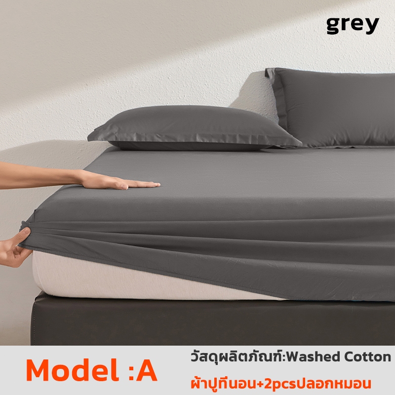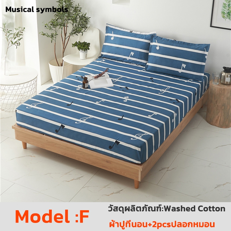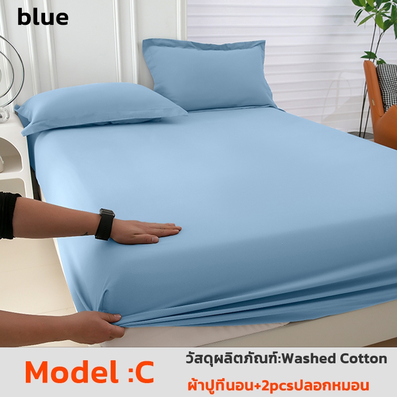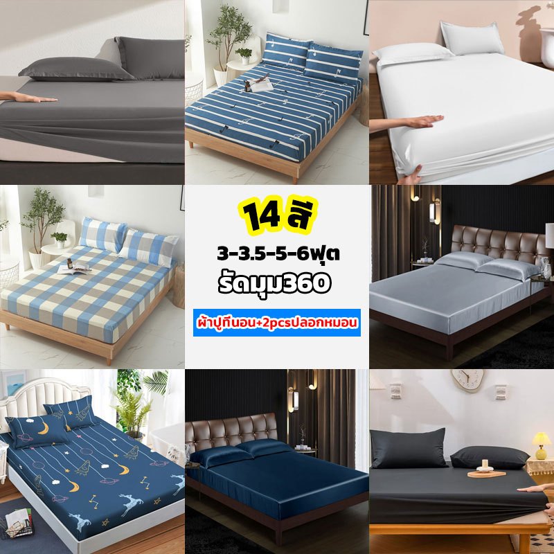 เซตปูที่นอน ผ้าปูที่นอน(พร้อมปลอกหมอน*2) ผ้าปู 3 ฟุต 3.5ฟุต 5ฟุต 6ฟุต รัดมุม360 าปูที่นอนกันไรฝุ่น มี14สีให้เลือก