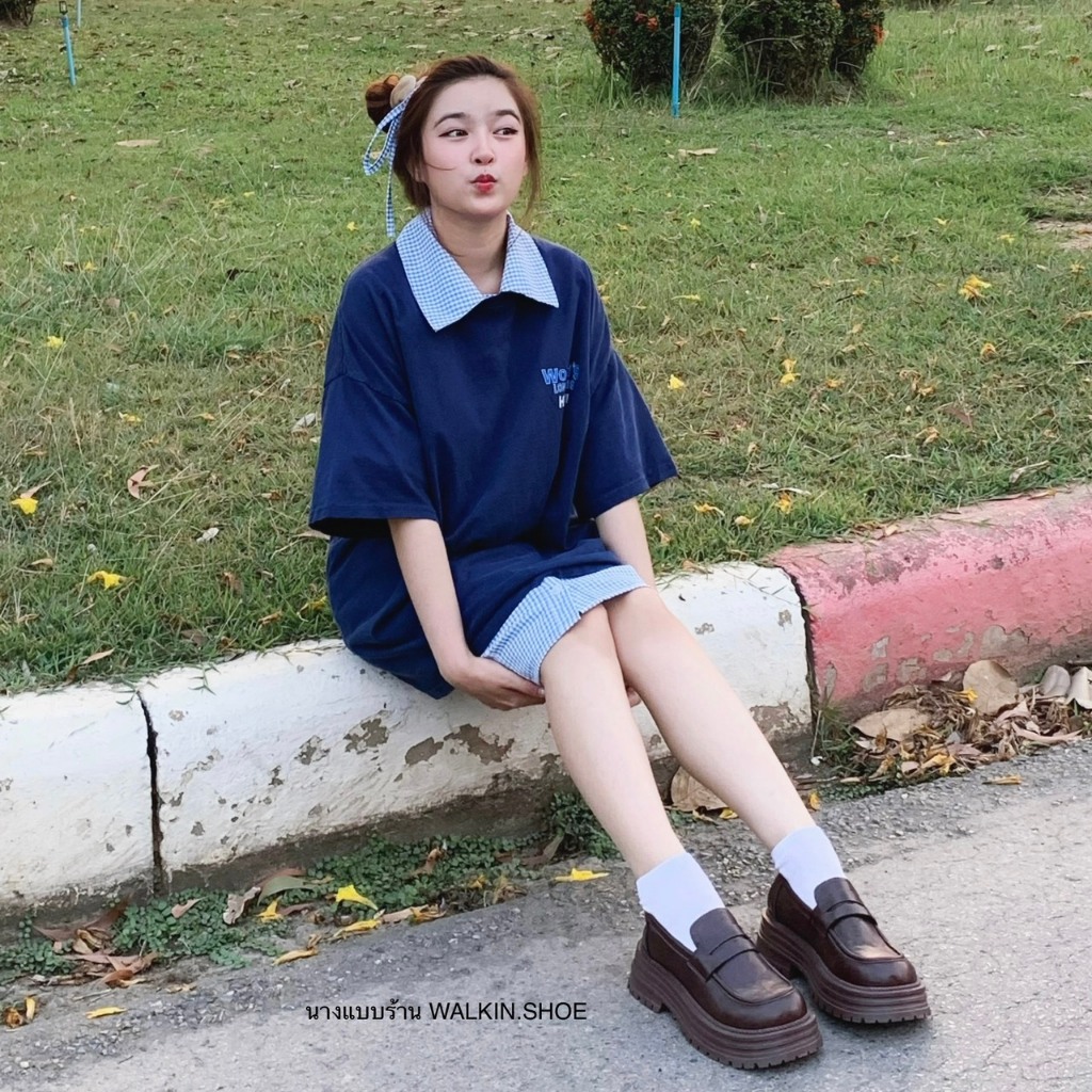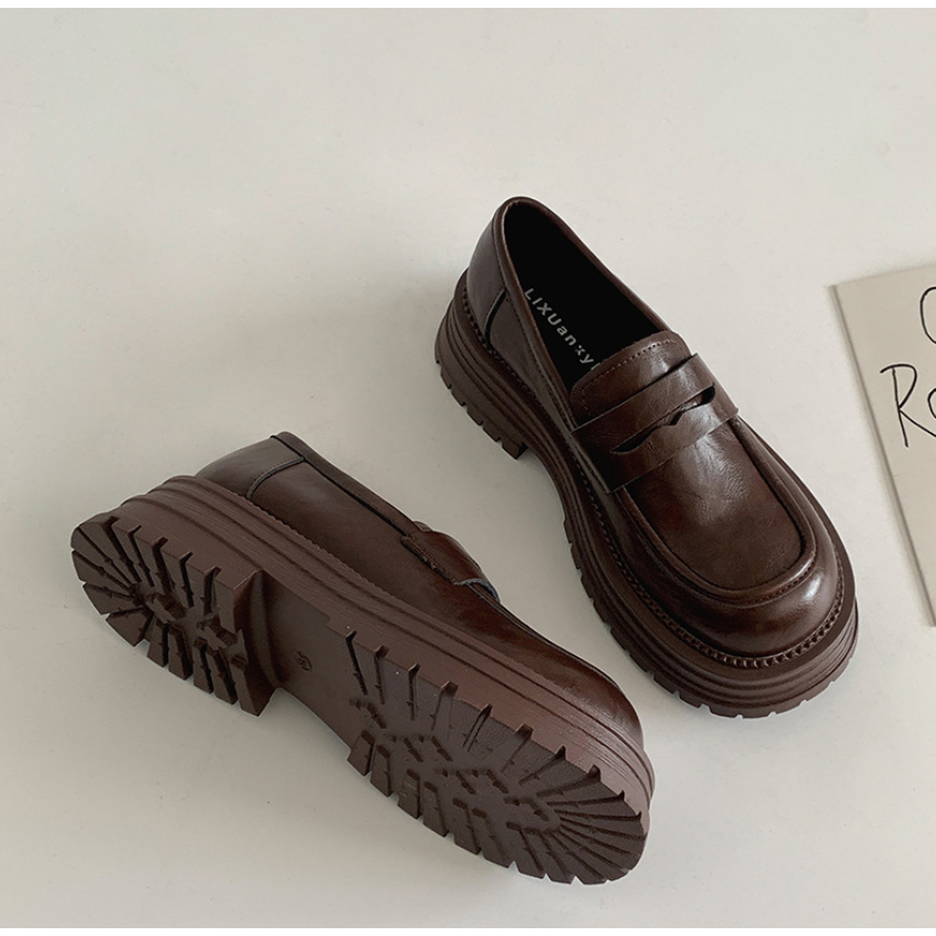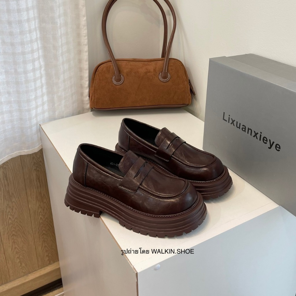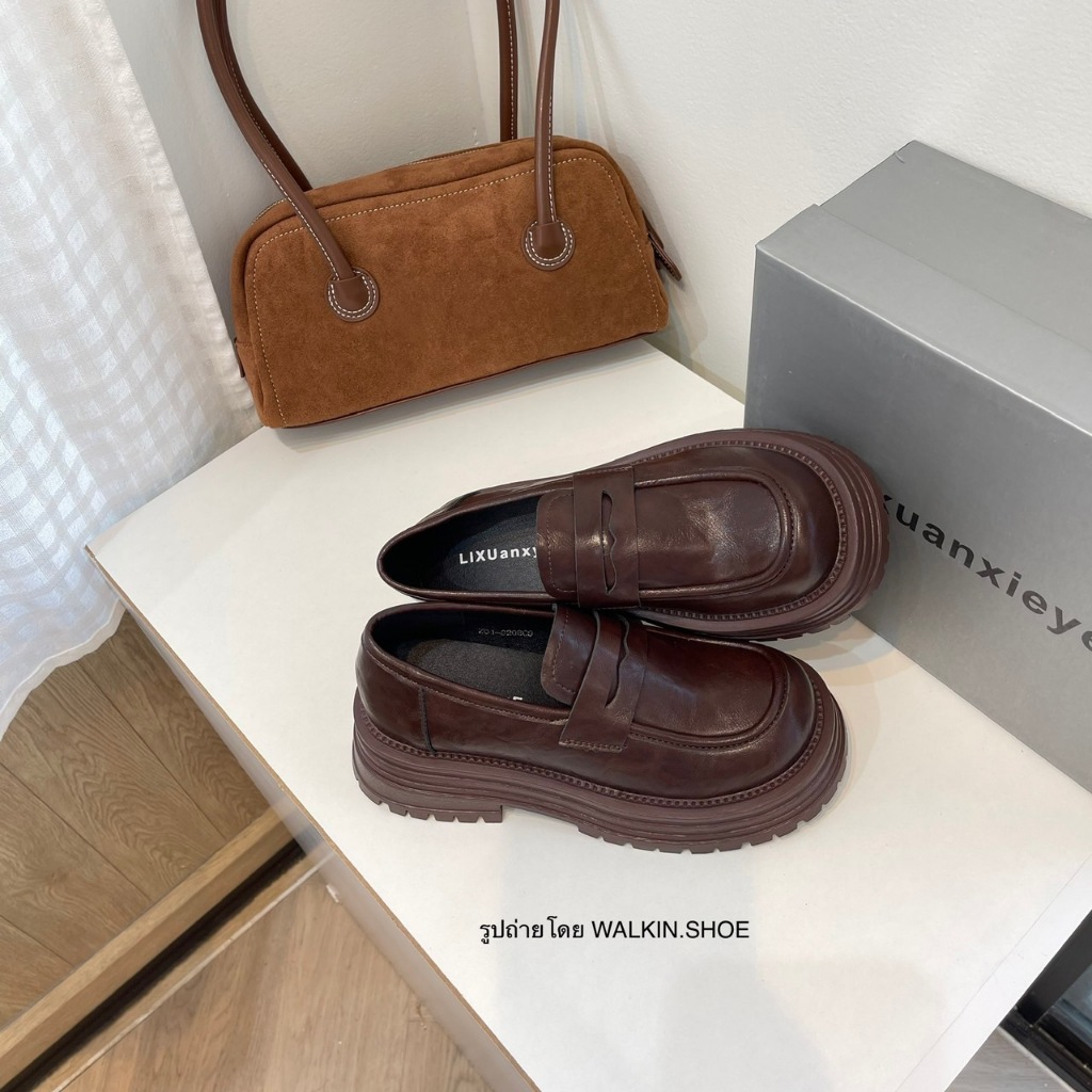 (พร้อมส่งจากไทย) รองเท้าคัทชูหนังโลฟเฟอร์ สีน้ำตาล พื้นนิ่ม รุ่น PEANUT LOAFER