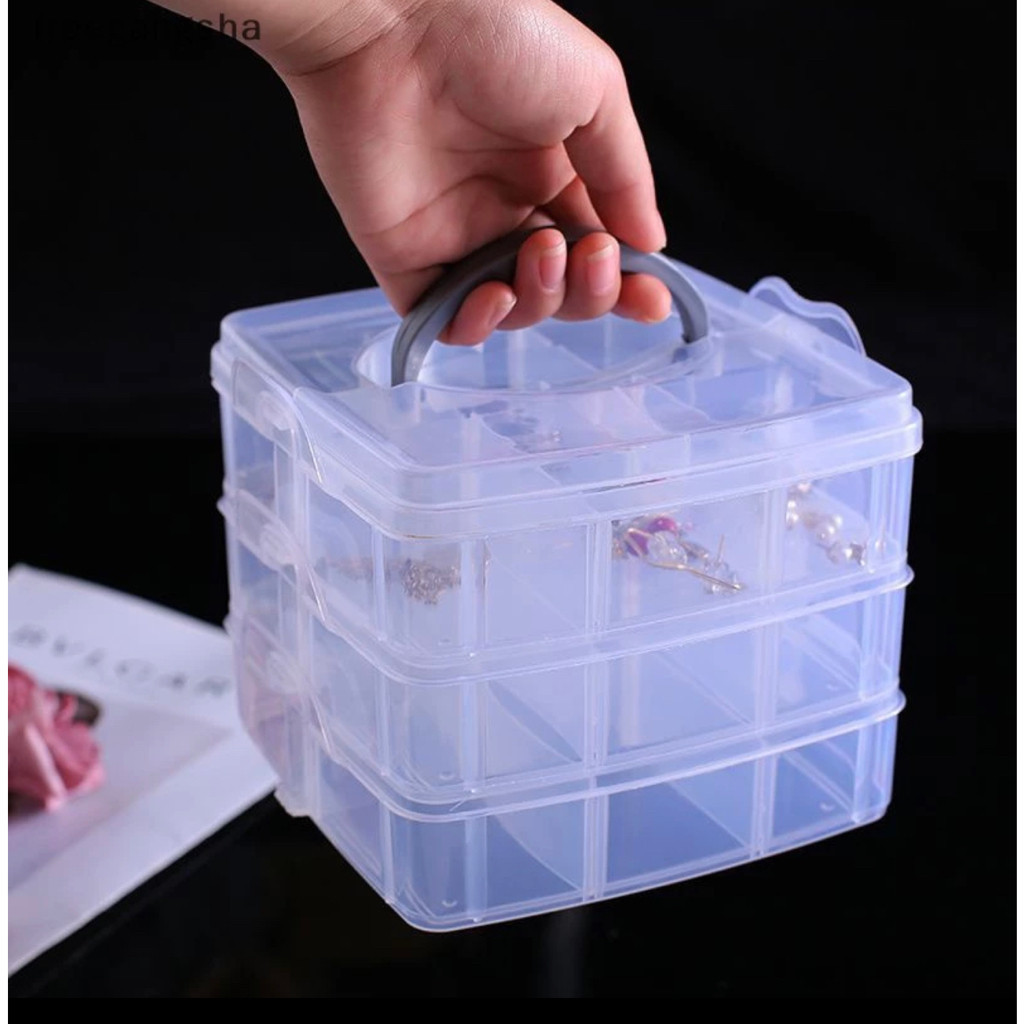 กล่องเก็บของ 3ชั้น18ช่อง (สีใส) กล่องใส่ของ แยกชั้น แยกช่องได้ / G0114