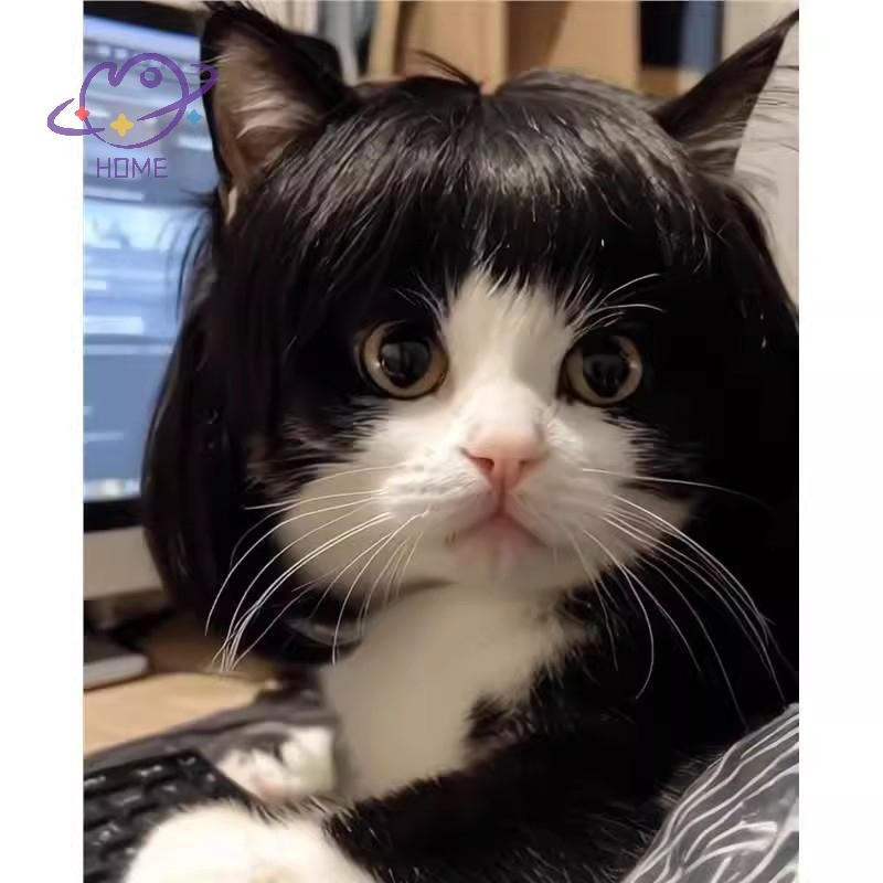 [อาจโฮม] วิกผมแมวตลก Trimmable วิกผมสัตว์เลี้ยงอุปกรณ์วิกผมสัตว์เลี้ยงสร้างสรรค์ตกแต่งสัตว์เลี้ยงวิกผมบางแสงเรียบวิกผมแมวอุปกรณ์สัตว์เลี้ยง {ไทย}
