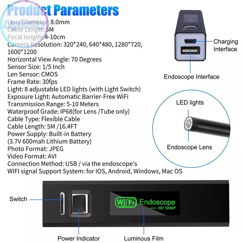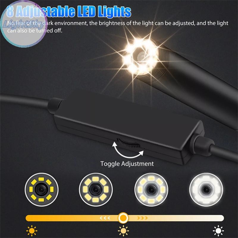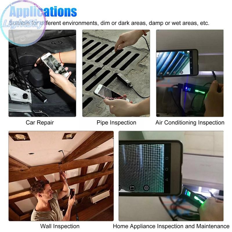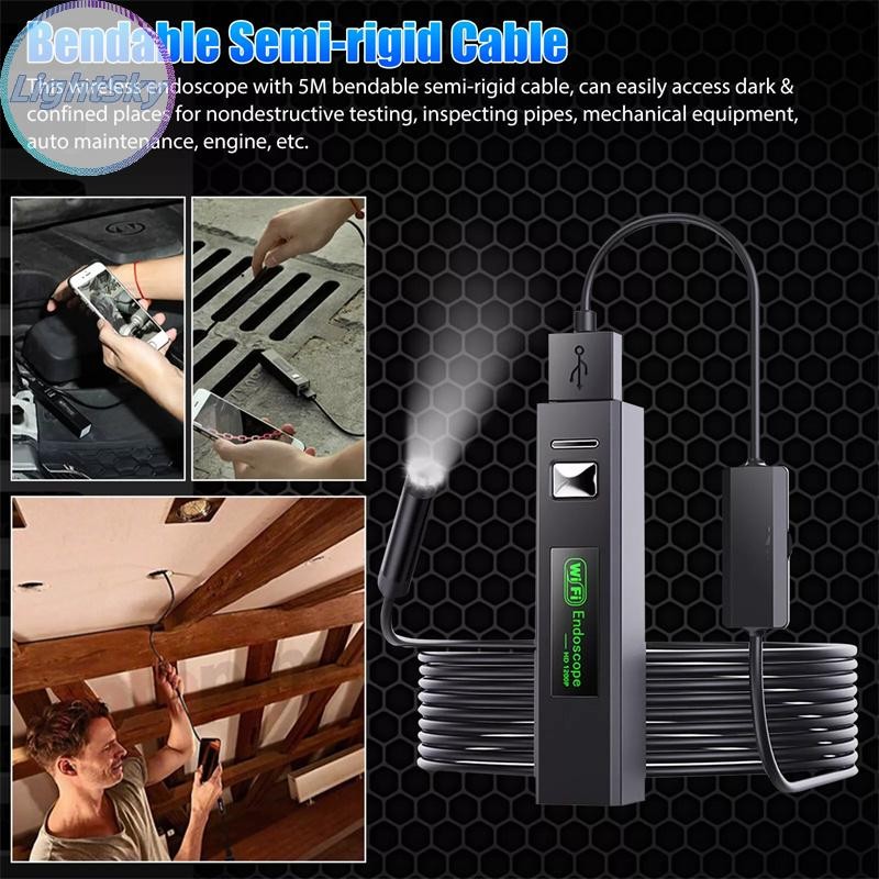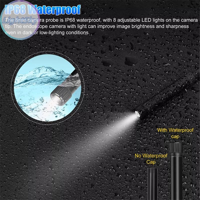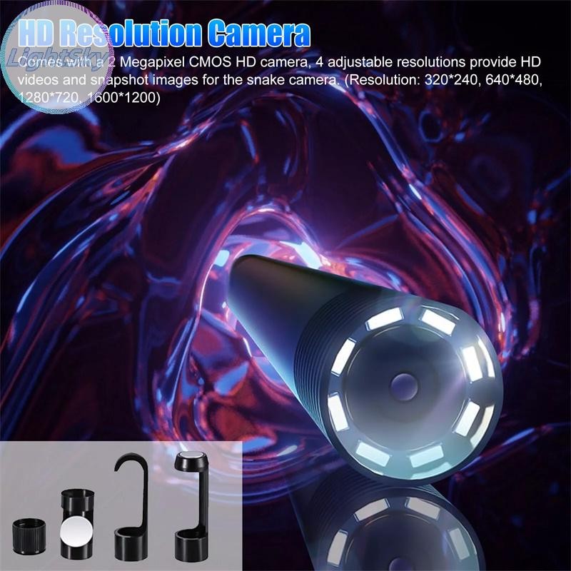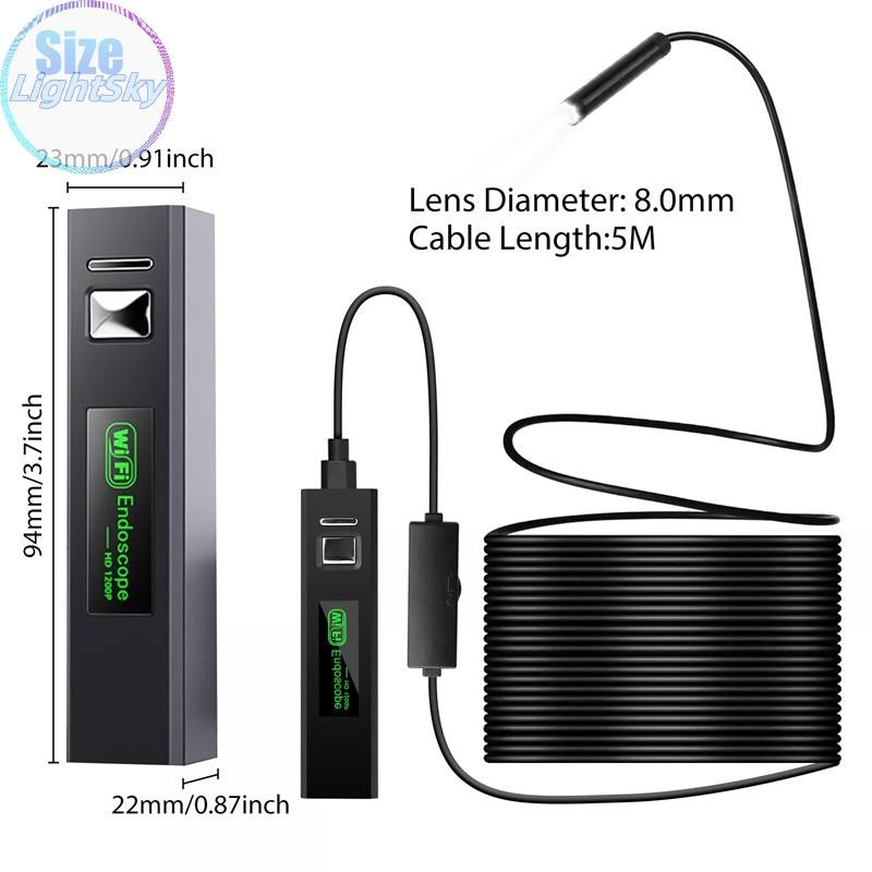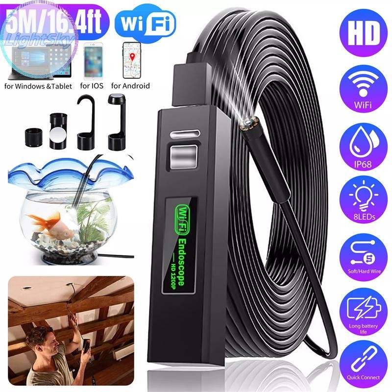 LightSky Wireless Endoscope WiFi Borescope กล้องตรวจสอบ 1200P HD IP68 กล้องงูกันน้ํา 8 LED สําหรับ Android IOS แท็บเล็ตพีซี TH