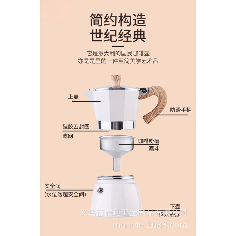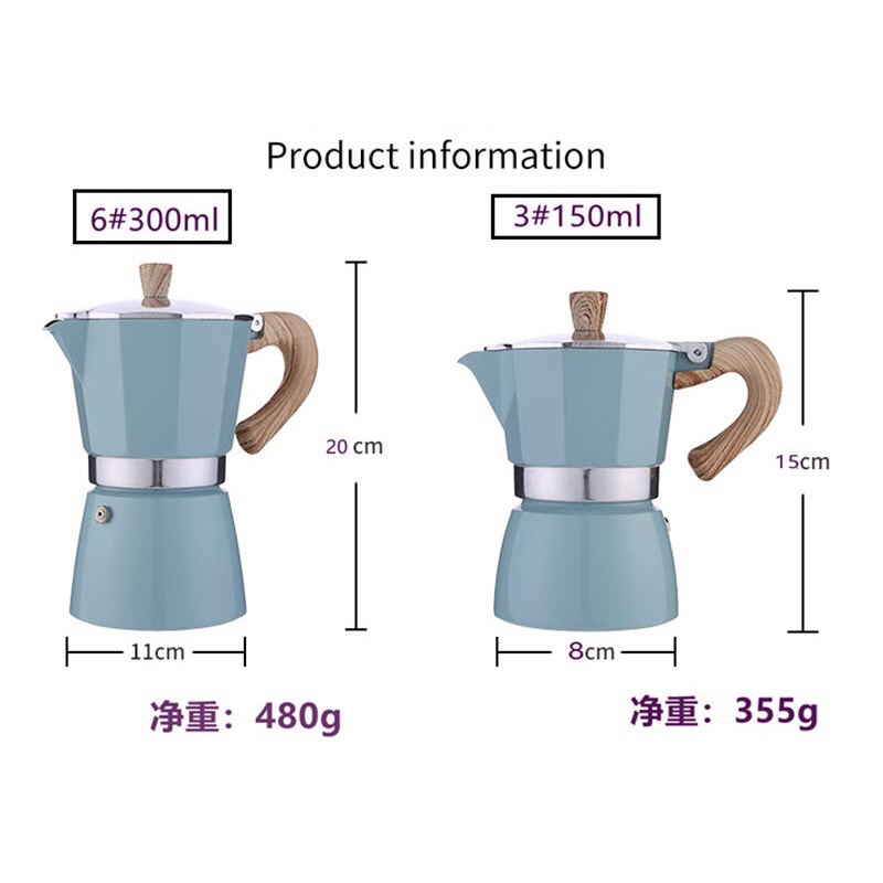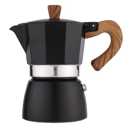 Moka Pot Coffee อลูมิเนียม คุณภาพเดียวกับของอิตาลี (ด้ามจับเป็นพลาสติกลายไม้) Mocha pot มอคค่าพอต กาแฟ