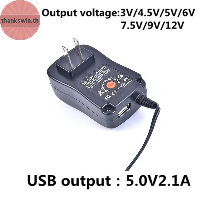 Thankswin อะแดปเตอร์ปรับแหล่งจ่ายไฟ 3V 4.5V 5V 6V 7.5V 9V 12V 2A 2.5A AC/US EU UK th