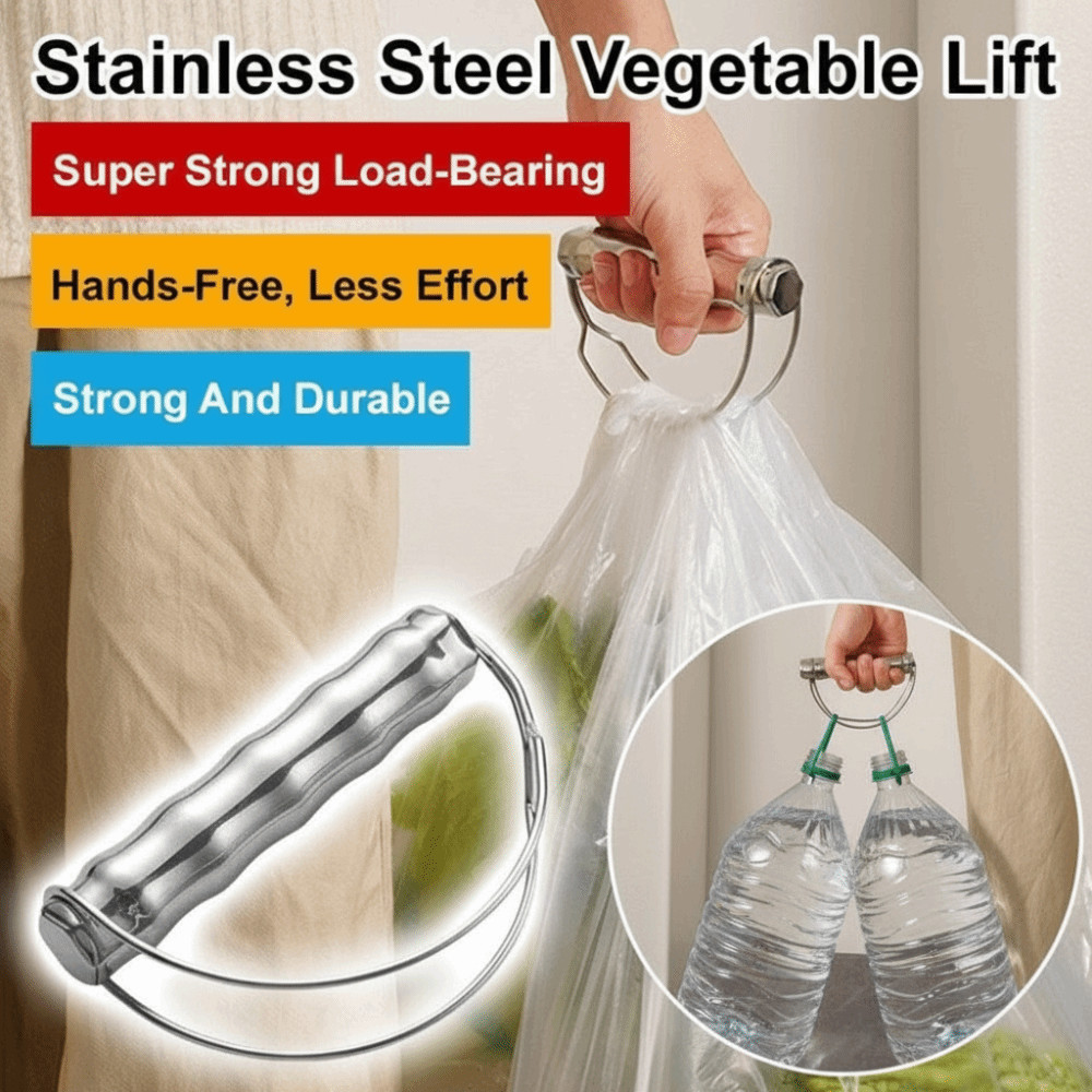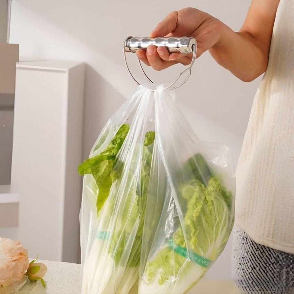 JIANG ด้ามจับถุงของชํา, ผู้ให้บริการผักประหยัดแรงงานสแตนเลส, ข้อต่อไม้ไผ่แบบพกพา Strong รับน้ําหนักผู้ถือถุงของชําคลิปสําหรับเครื่องม ือช้อปปิ้งสตร