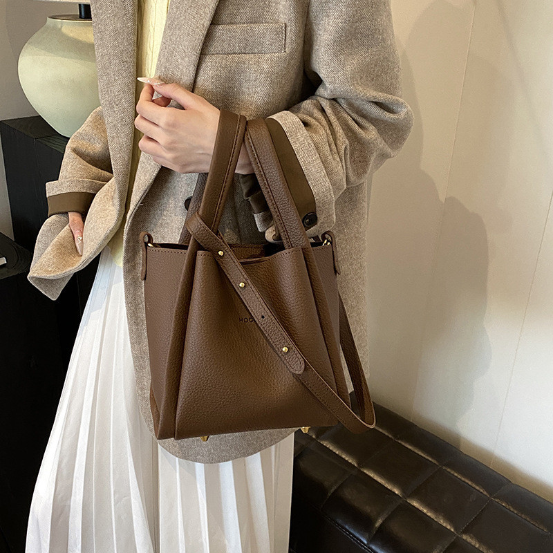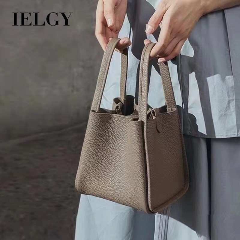 อิลกี้ สุภาพสตรีพร็อพย้อนยุคตะกร้าผักขนาดกลางชุดหนังนุ่มความจุขนาดใหญ่พร็อพกระเป๋าถังแบบพกพา