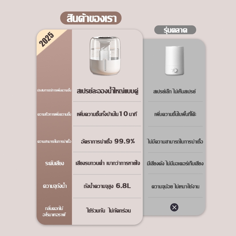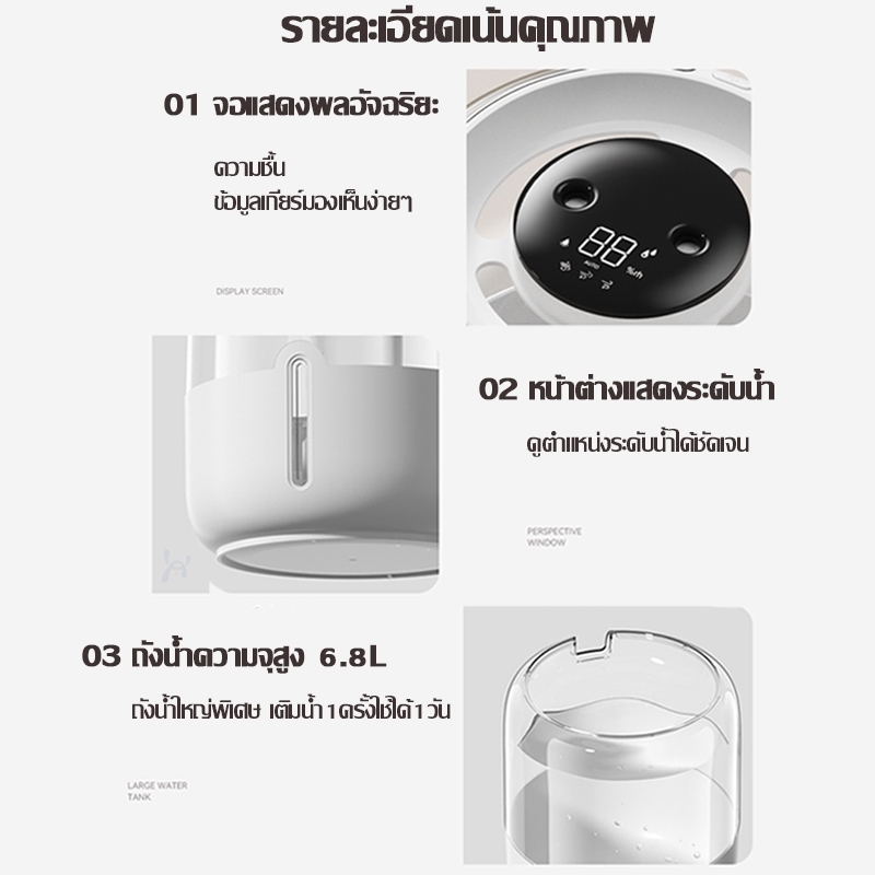 💦ป้องกันไม่ให้ทารกแห้ง💦เครื่องพ่นไอน้ำ ทำความชื้น เครื่องพ่น 6.8Lเพิ่มความชื้น ฟอกอากาศ พร้อมจอแสดงอุณหภูมิ
