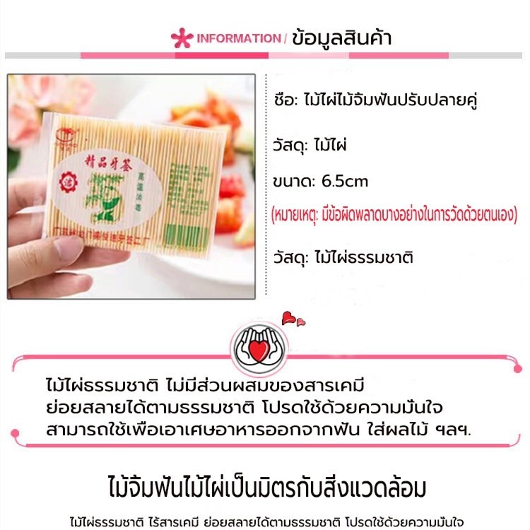ไม้จิ้มฟันไม้ไผ่ธรรมชาติ สุขภาพทันตกรรม ใช้สำหรับจิ้มผลไม้ ขนม ใช้ทำความสะอาดซอกฟัน
