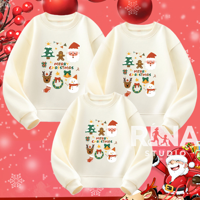 🔥พร้อมส่ง&COD🔥RINA STUDIO🔥 สินค้าใหม่ 2026 ครอบครัว คอกลม เสื้อวีนที่แขนยาว สไตล์วินเทจ 100% ผ้าใบหม้อ A1124#3