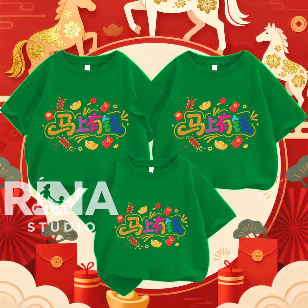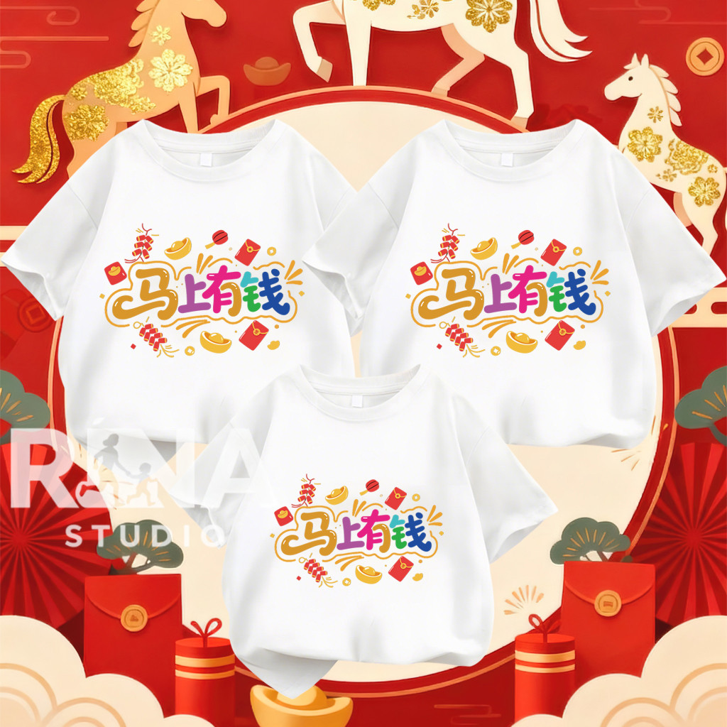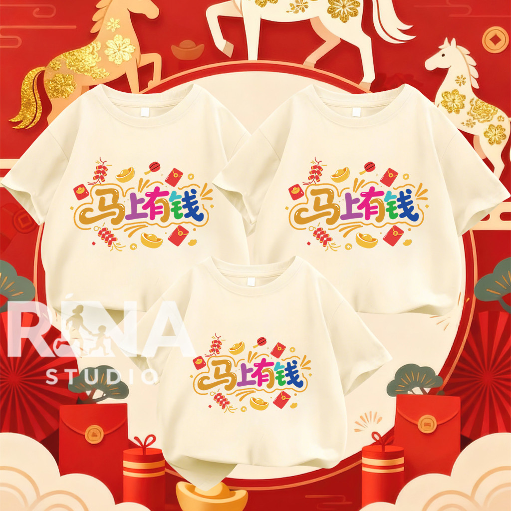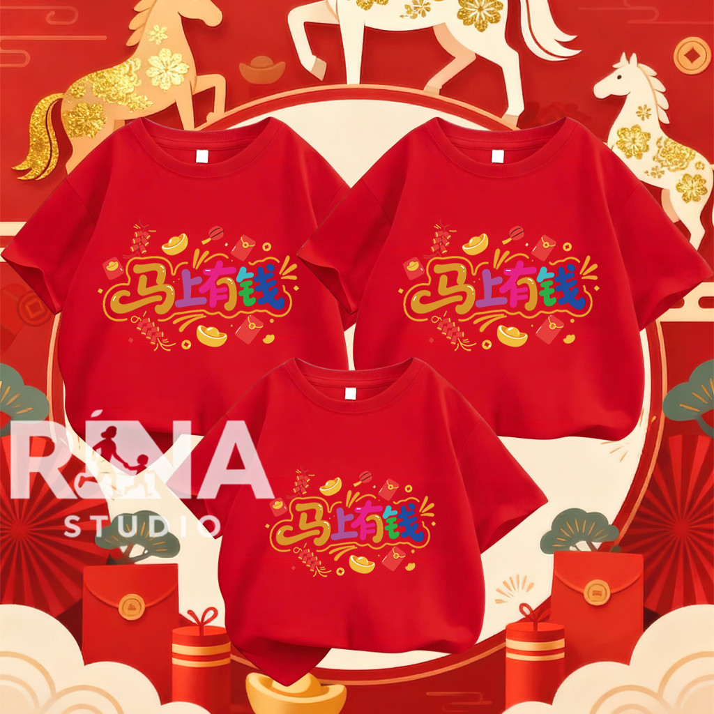 COD✅RINA STUDIO🔥 เซ็ตเสื้อยืดครอบครัวHappy New years Family โทนสีแดง สำหรับเทศกาลตรุษจีนปี จากผ้าฝ้ายคุณภาพดีA1103#1