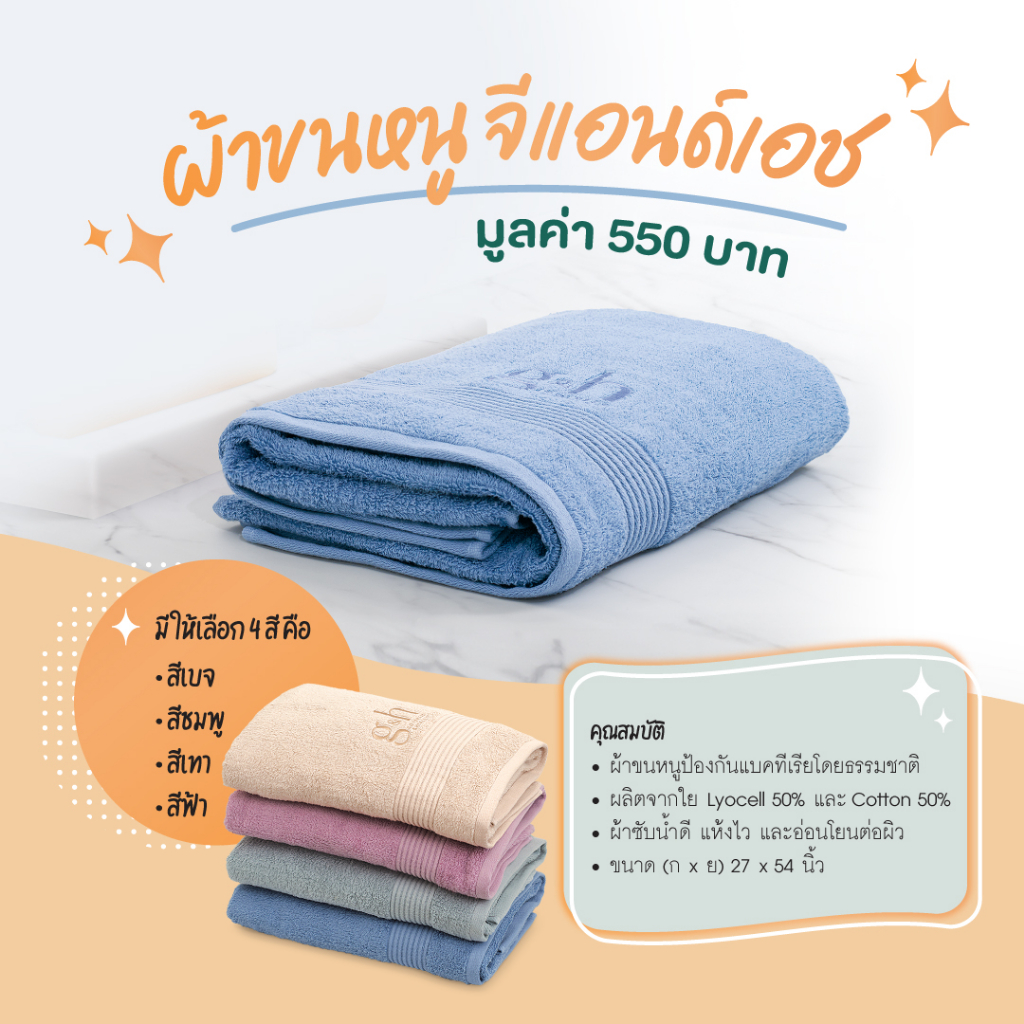 ผ้าขนหนู ผ้าเช็คตัว ป้องกันแบคทีเรียโดยธรรมชาติ