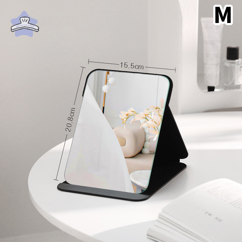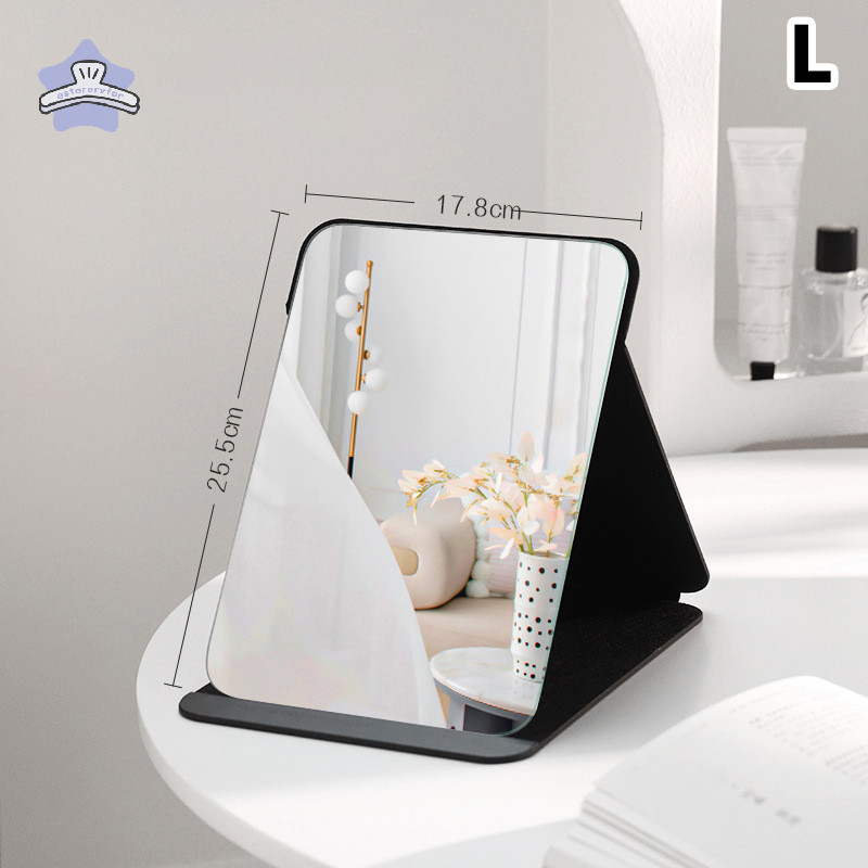 [เอสเทอร์เรียส] เดสก์ท็อปกระจกแต่งหน้าสีทึบหนังที่เรียบง่ายแบบพกพามือถือกระจกสีดําพับนักเรียนขนาดกะทัดรัดน่ารักกระจกกระเป๋า ไทย