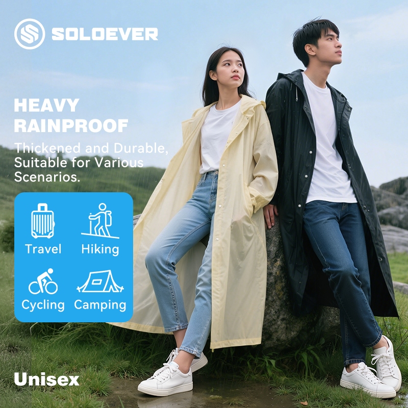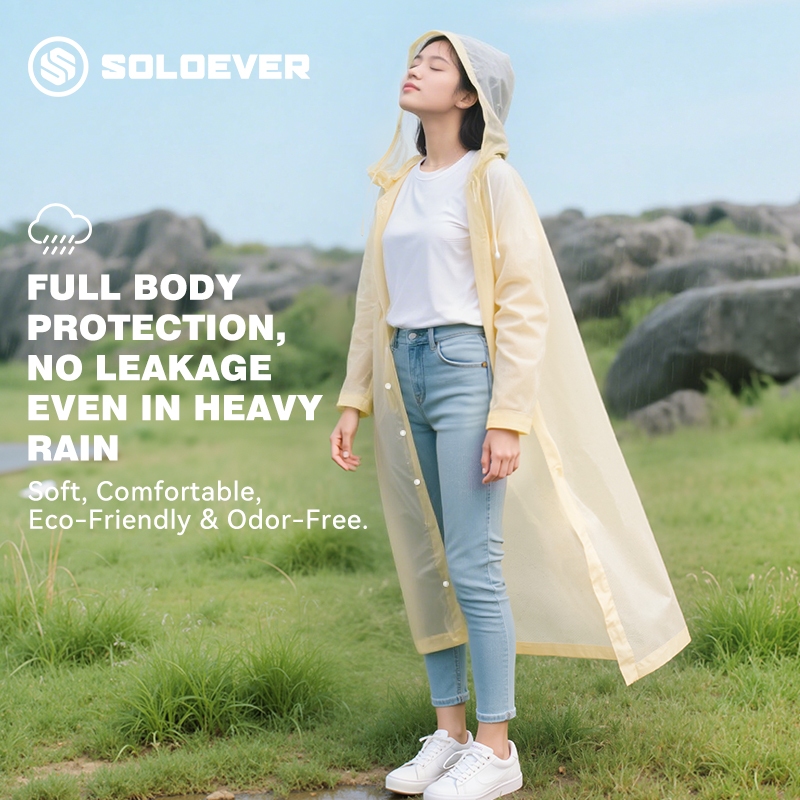 SOLOEVER Raincoat - เสื้อกันฝนยาว UPF50+ กันน้ำ100% สำหรับเดินป่าและท่องเที่ยว