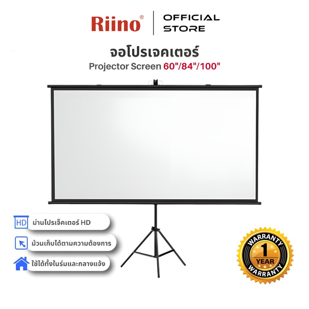[พร้อมส่ง]Riino Projector Screen 60/84/100นิ้ว จอโปรเจคเตอร์ จอรับภาพ4K แบบตั้งพื้น แขวนผนัง พกพาสะดวก
