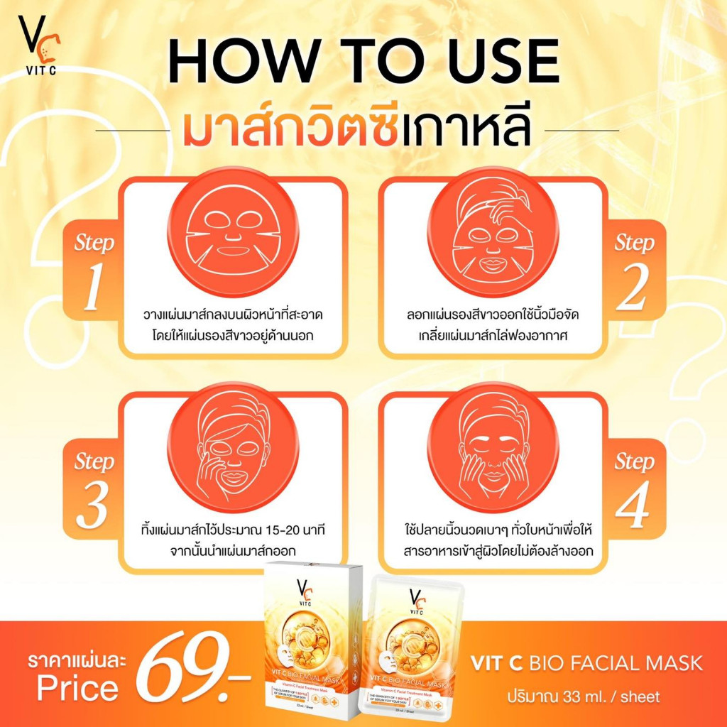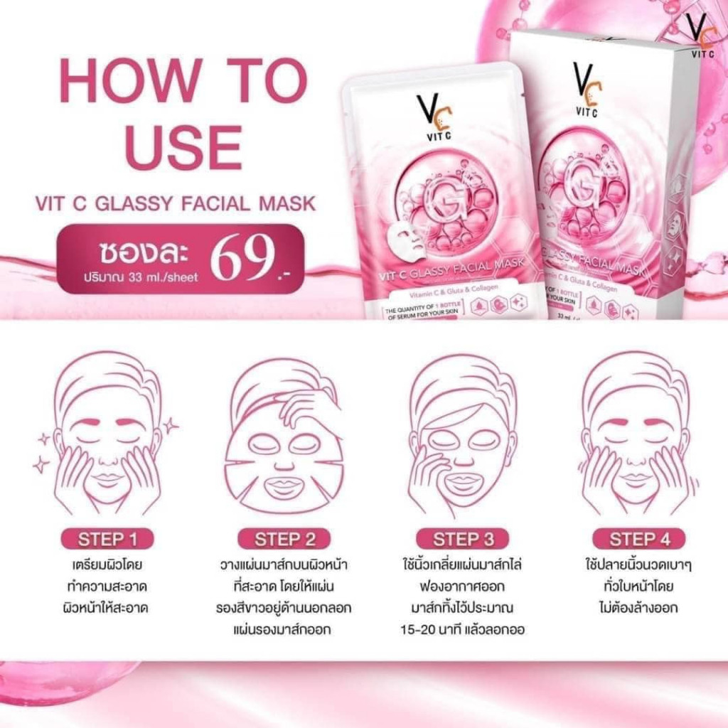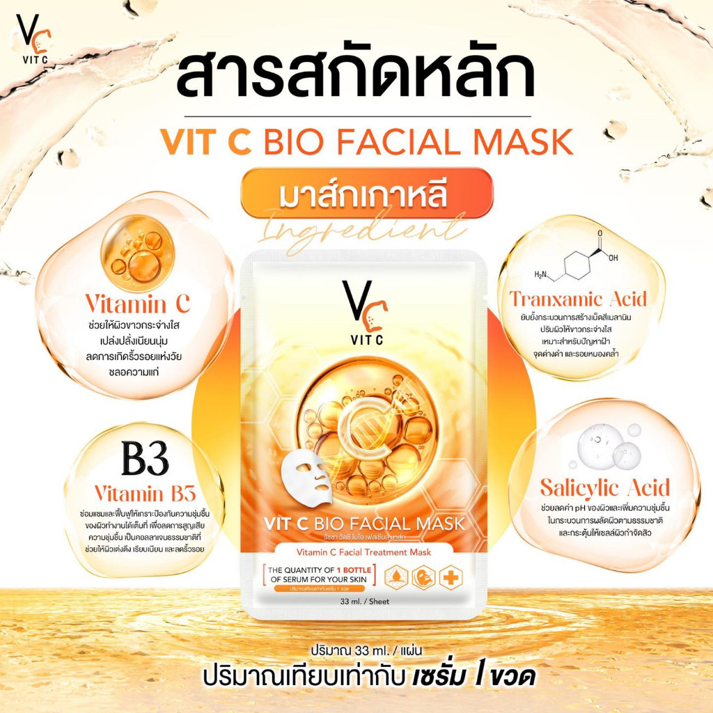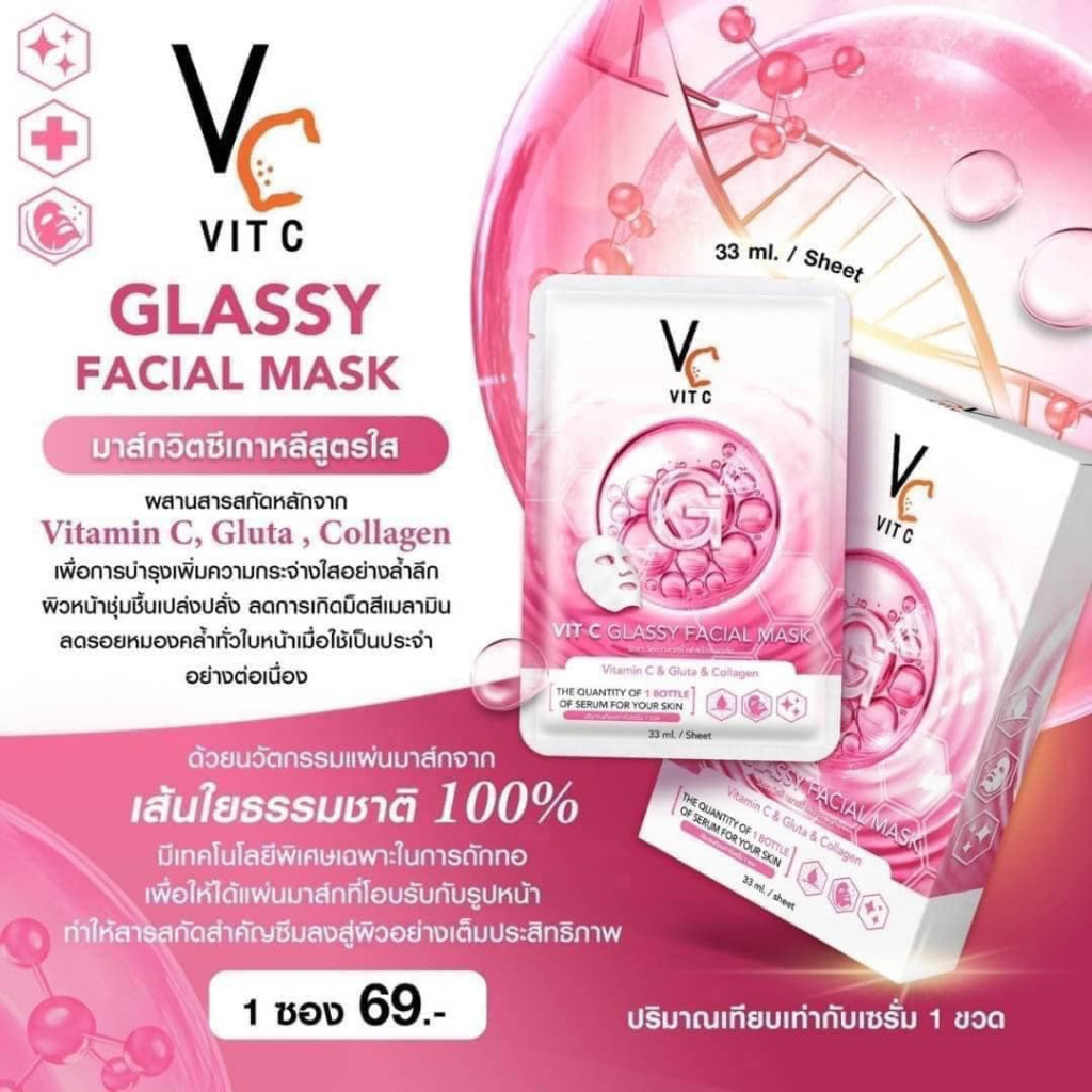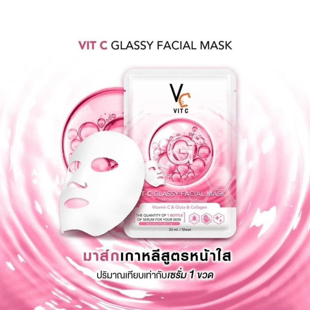 (1แผ่น) Vc VIT C BIO / GLASSY FACIAL MASK 33ml.