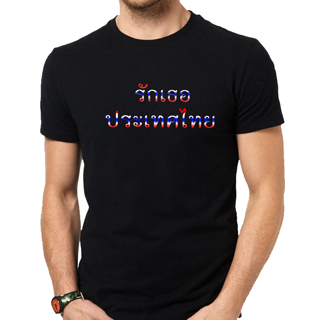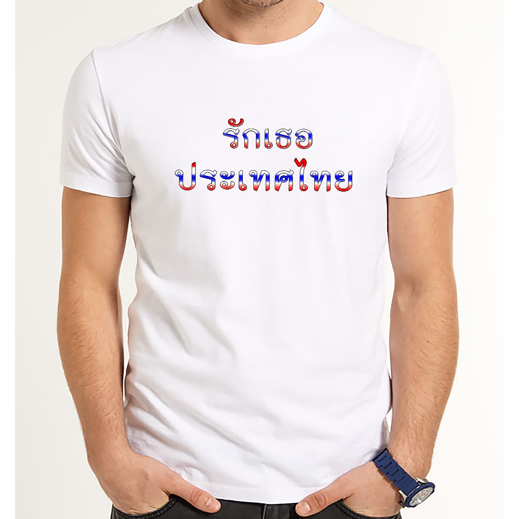 เสื้อยืดคอกลมลายรักประเทศไทย ผ้า cotton 100% นุ่มใส่สบาย ลายคมชัดทนทาน ขนาด S-3XL