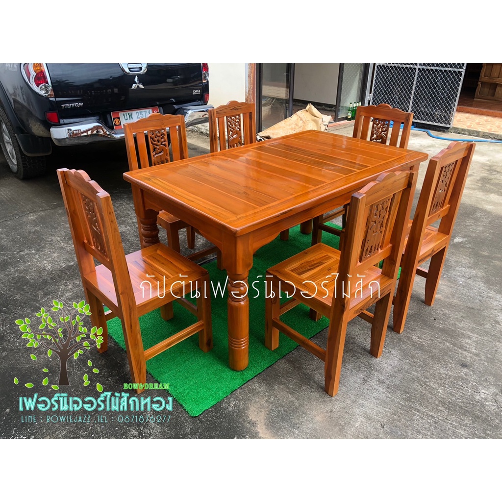 โต๊ะอาหารไม้สักทองเก้าอี้ 6 ที่นั่ง และ 4 ที่นั่ง