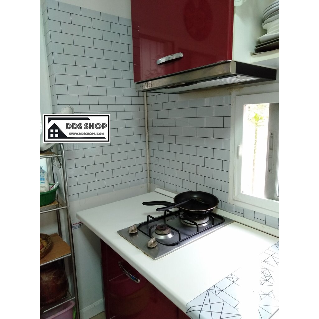 สติ๊กเกอร์อลูมิเนียมฟอยด์ติดครัวกันน้ำมัน "White Grey Brick สีขาวปนเทา" ขนาด 60cm x 3m