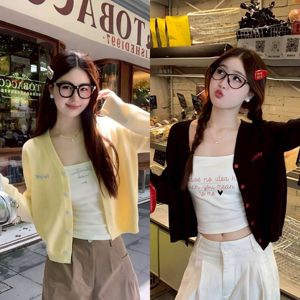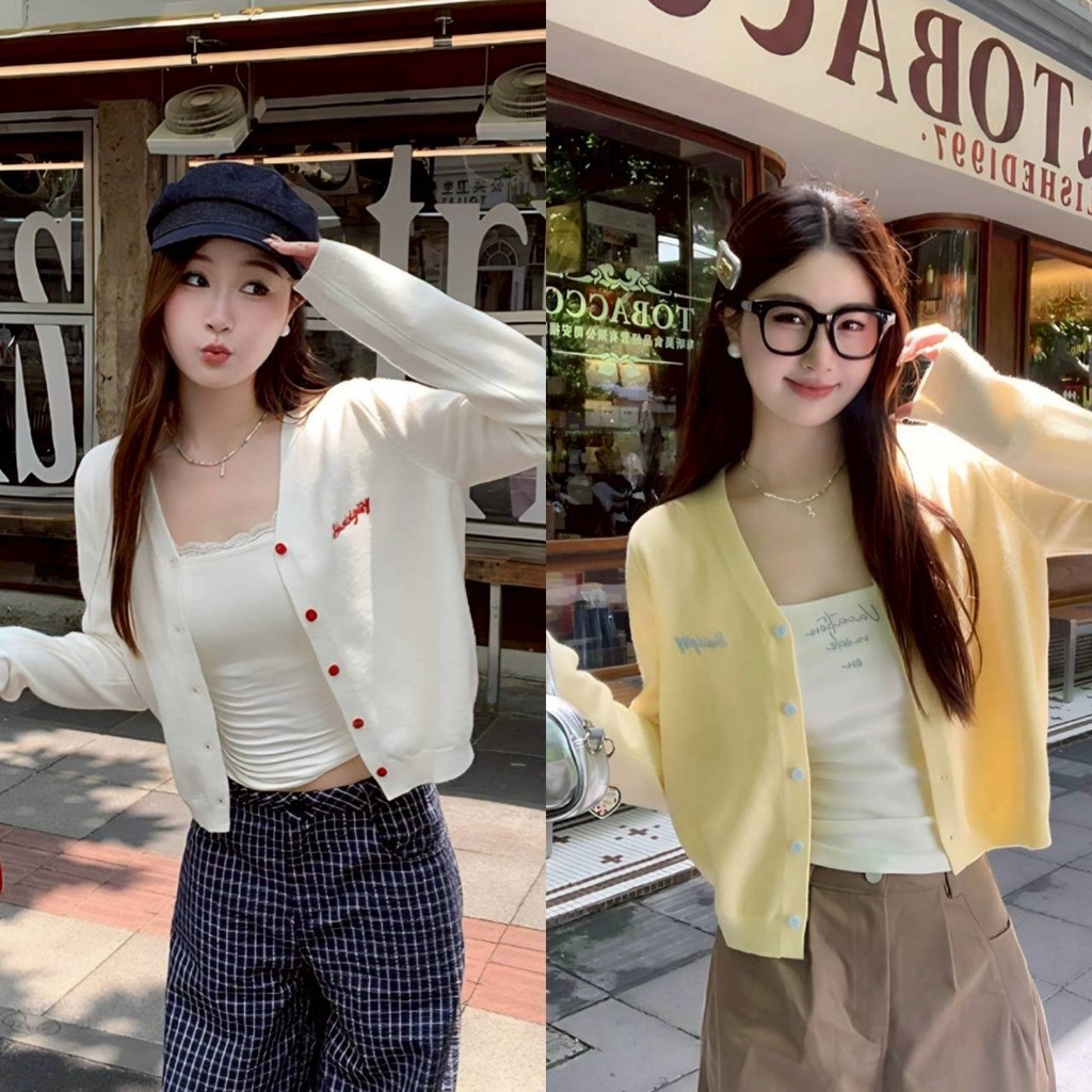 Glassy Sky😜พร้อมส่ง เสื้อคาร์ดิแกรนแขนยาว ผ้าไหมพรม สีน่ารักใส่สบาย เกาหลีมาก ใส่สบาย(Z-K117)