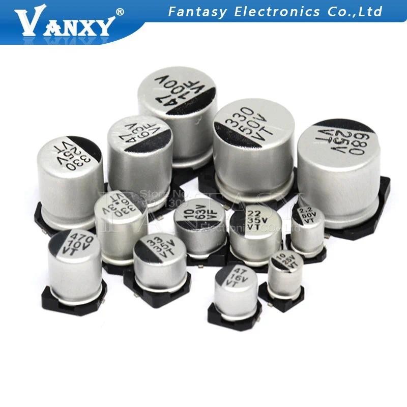 10pcs SMD 10V 16V 25V 35V 47UF 50V 100UF 220UF 470UF 1000UF 10UF 22UF 330UF 2200UF 150UF อลูมิเนียม electrolytic capacitor