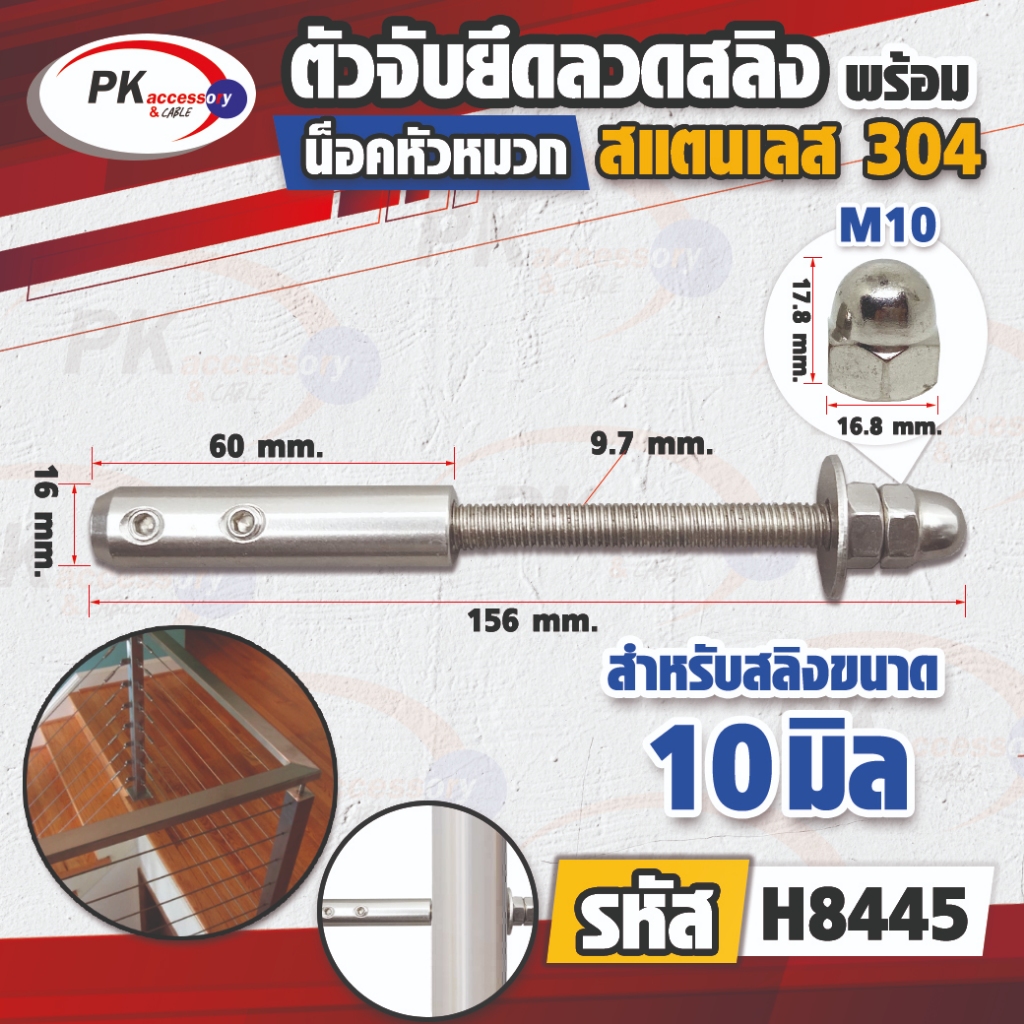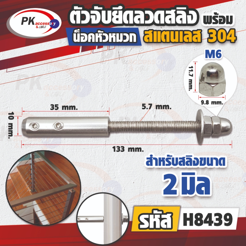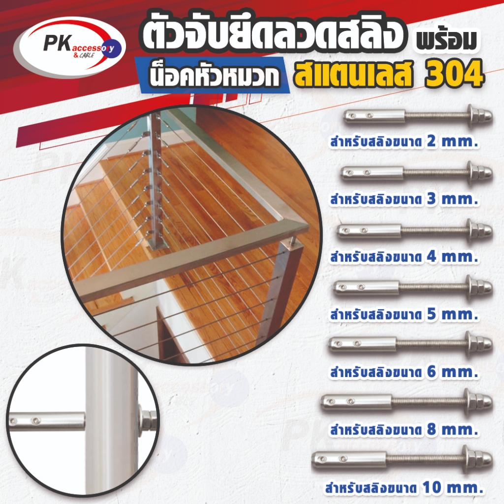อุปกรณ์ล็อกยึดจับสายสลิง แบบน็อตหัวหมวกปิด สแตนเลส 304 มีหลายขนาดให้เลือก (ราคาต่อ 1 ชิ้น)