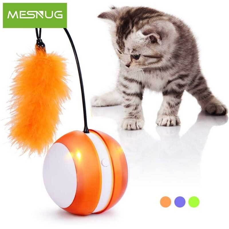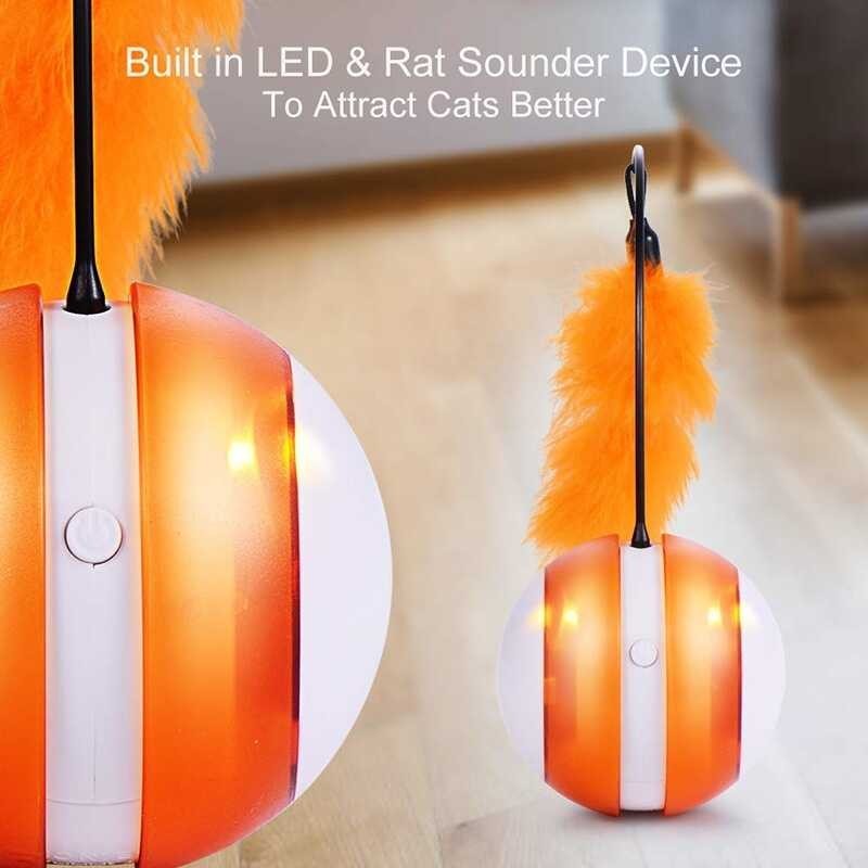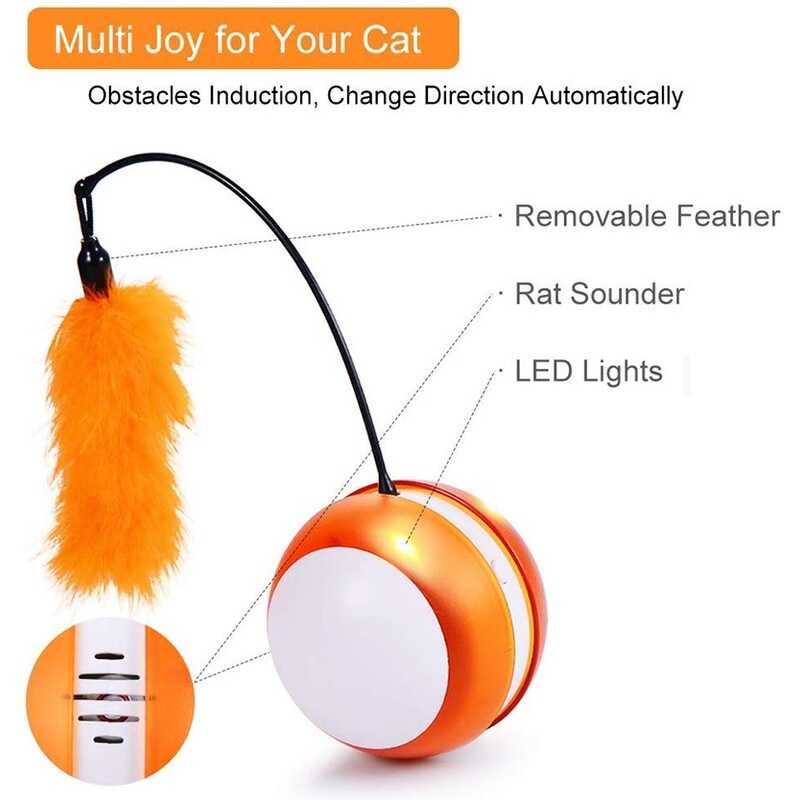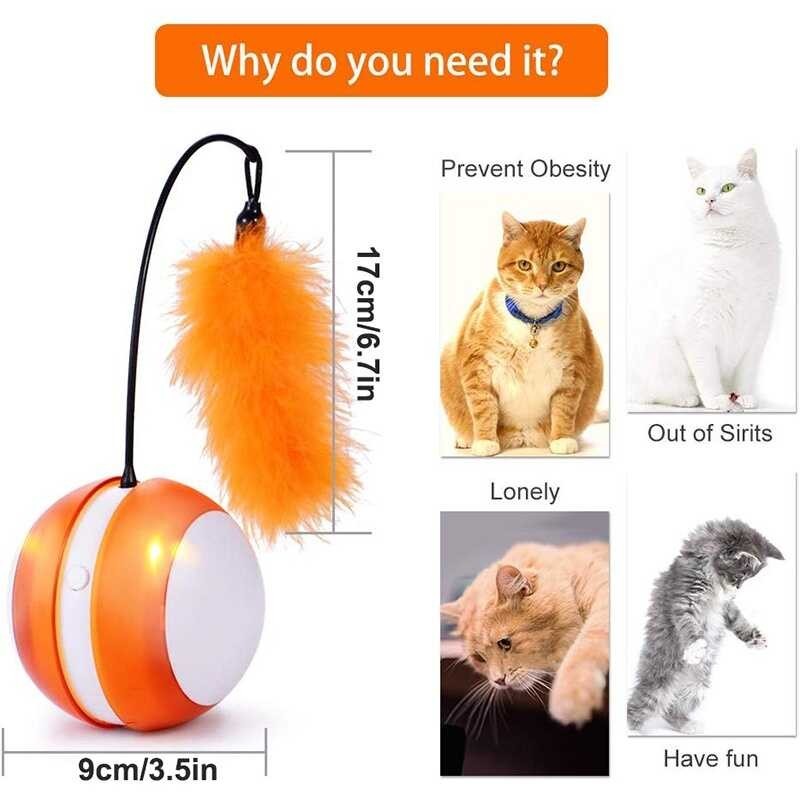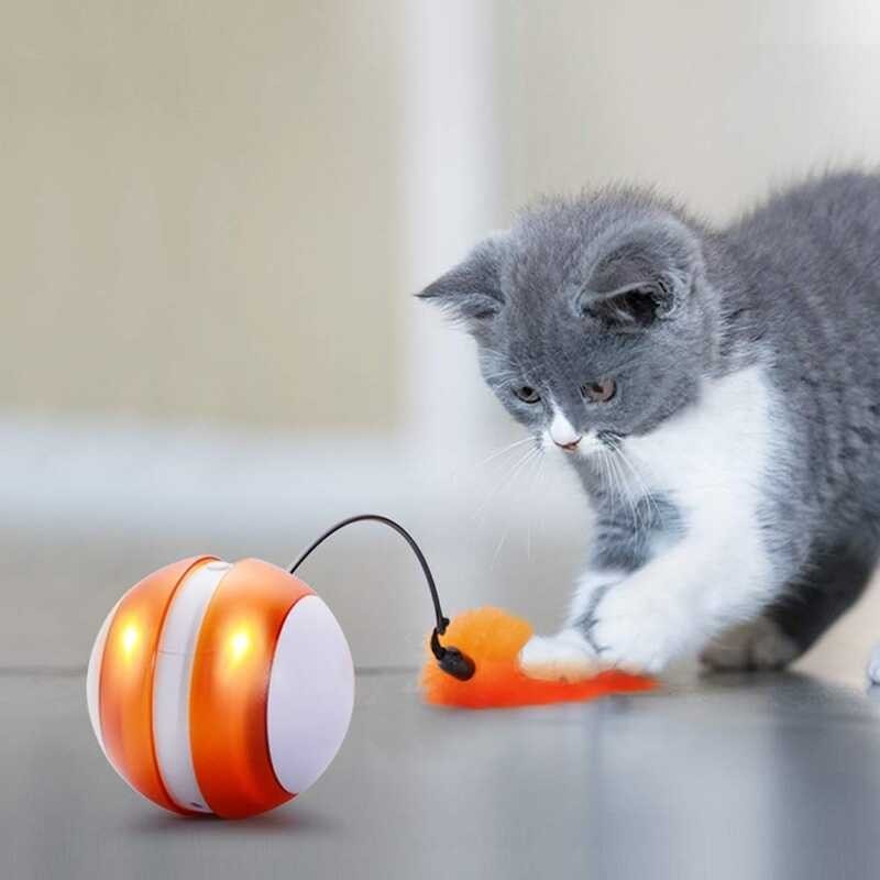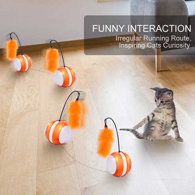 BENEPAW ลูกบอลของเล่นแมวกลิ้งไฟฟ้าขนนกปรับทิศทางอัตโน