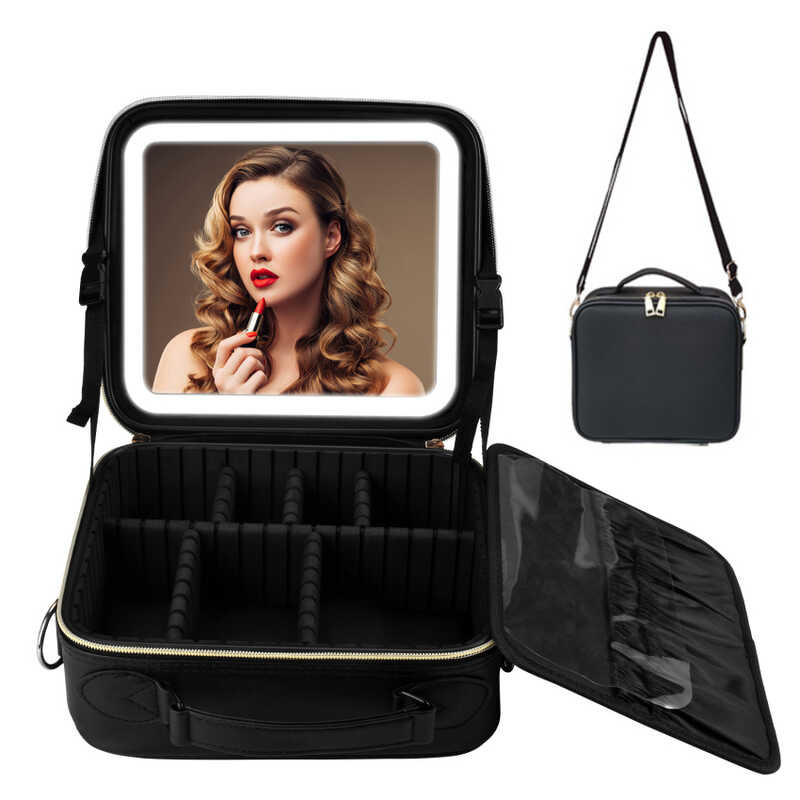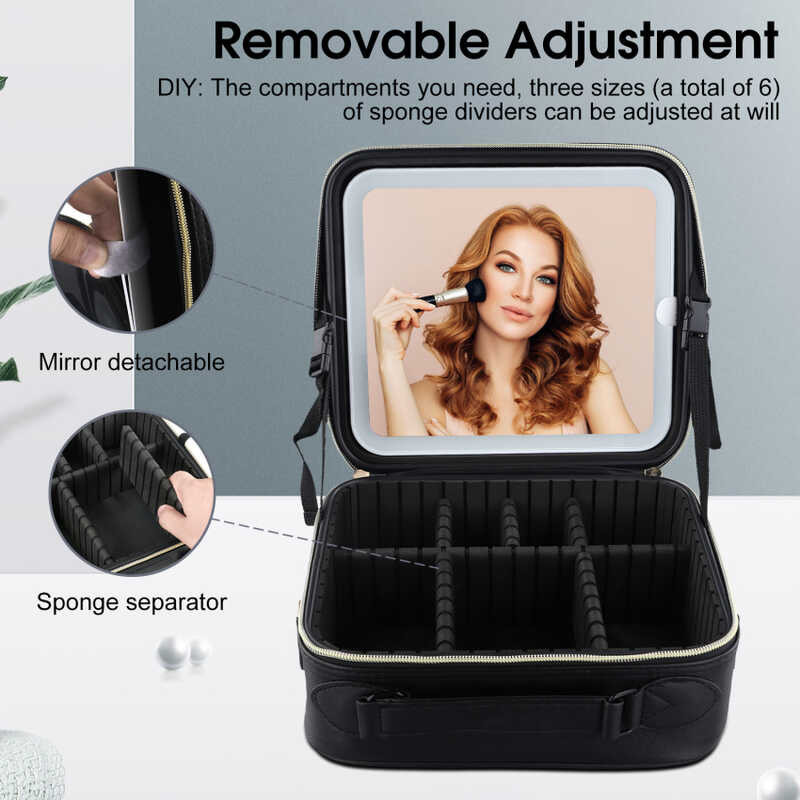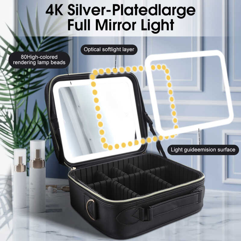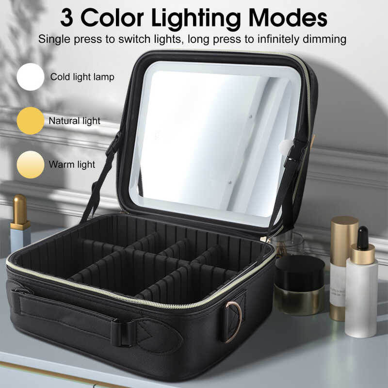 LED กระเป๋าเครื่องสำอางเวลาเดินทางพรีเมี่ยมพร้อมไฟ