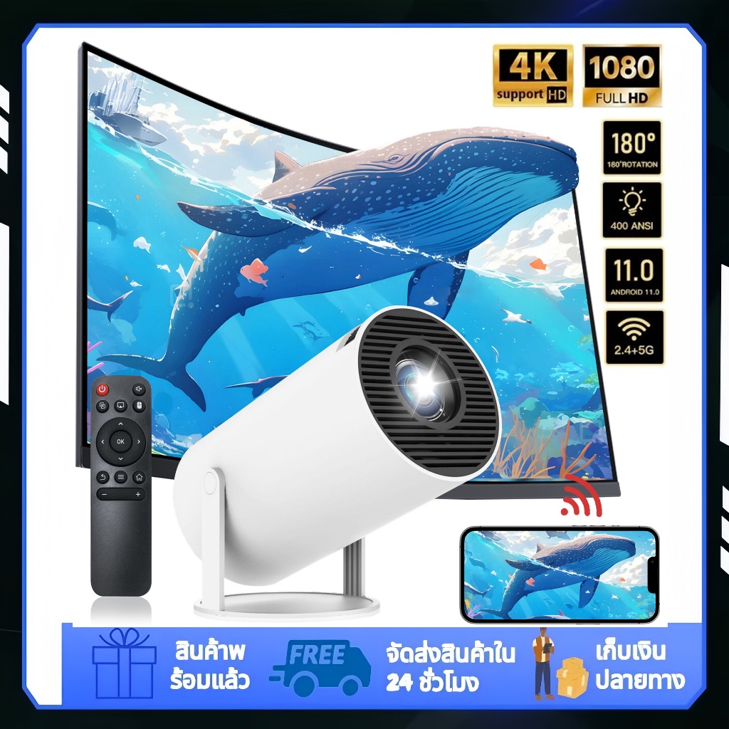 【จัดส่งจากกรุงเทพฯ】HY300 Pro 4K โปรเจคเตอร์ iPhone / Android 11 1080P 1280*720P โฮมเธียเตอร์ Netflix/YouTube