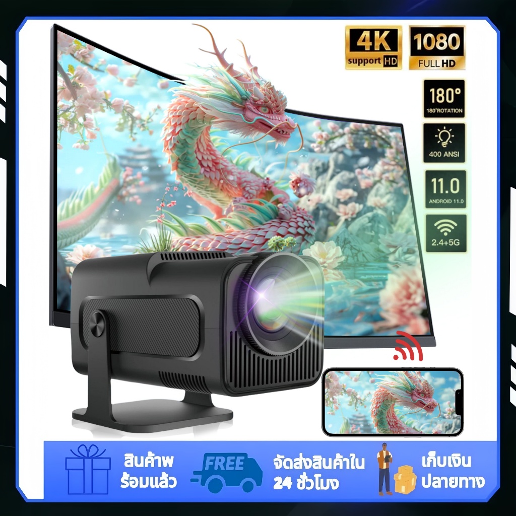 Hy320 โปรเจคเตอร์ใหม่ในครัวเรือนแบบพกพา HD 1080P สํานักงานธุรกิจหอพักครอบครัว