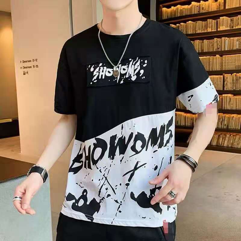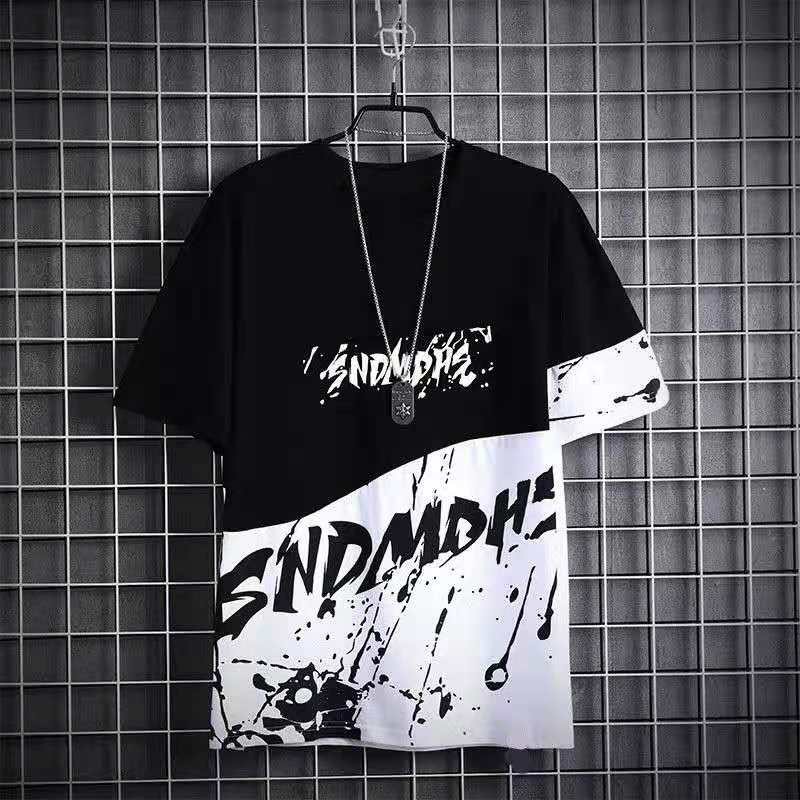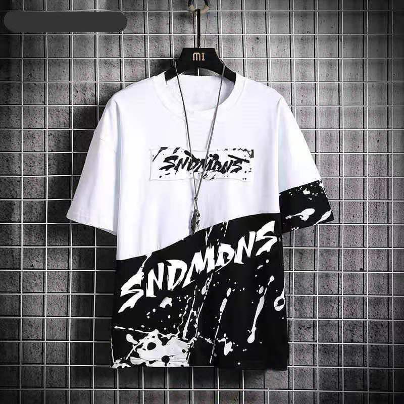 พร้อมส่งเสื้อยืดแขนสั้นคอกลมเทรนด์เกาหลีหลวมบนการพิมพ์น้ำแบรนด์แขนสั้นผู้ชาย(T-022)