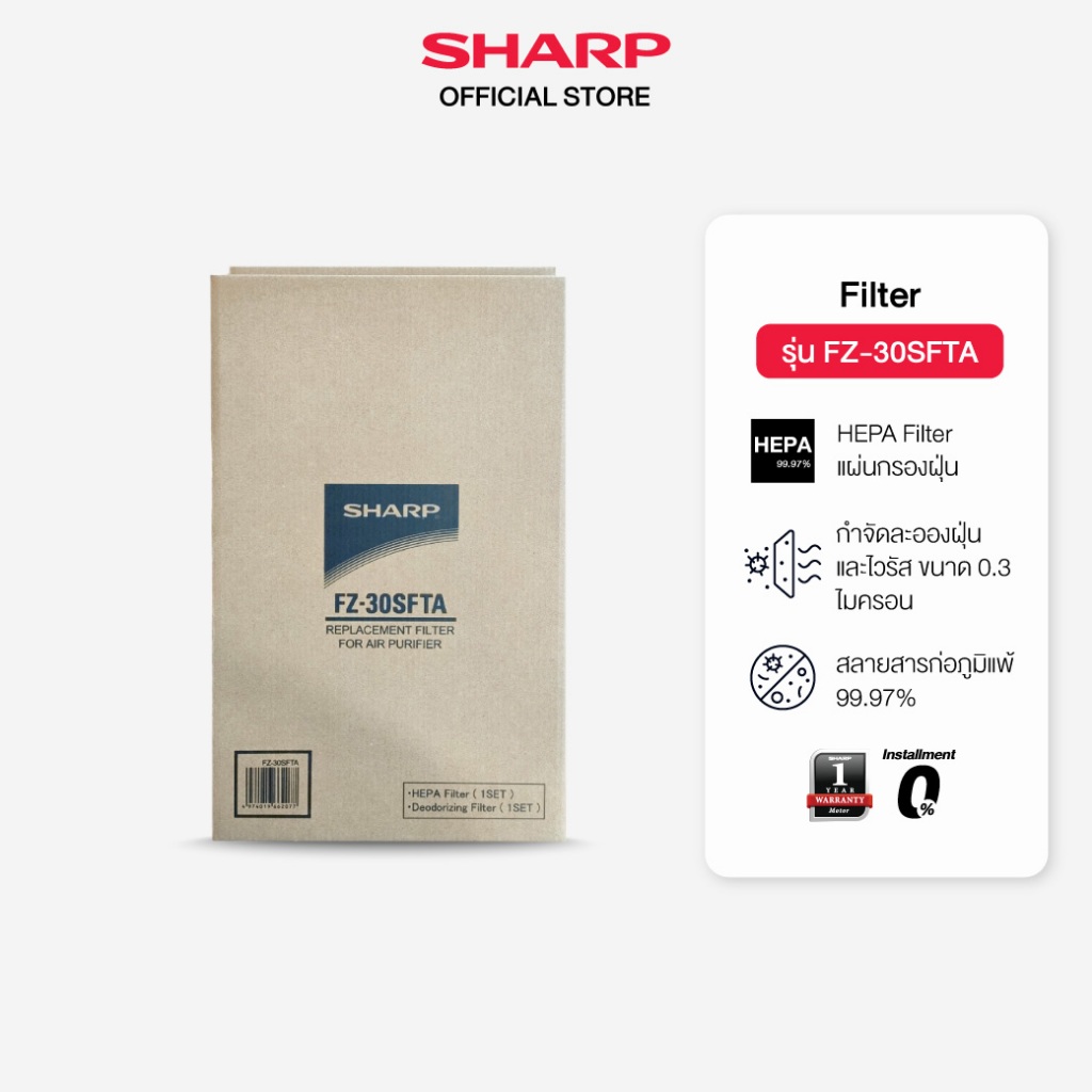 SHARP Filter แผ่นกรองฝุ่น/กรองกลิ่น รุ่น FZ-30SFTA /A40DFE /A40HFE /A80SFE /FZ-40STS