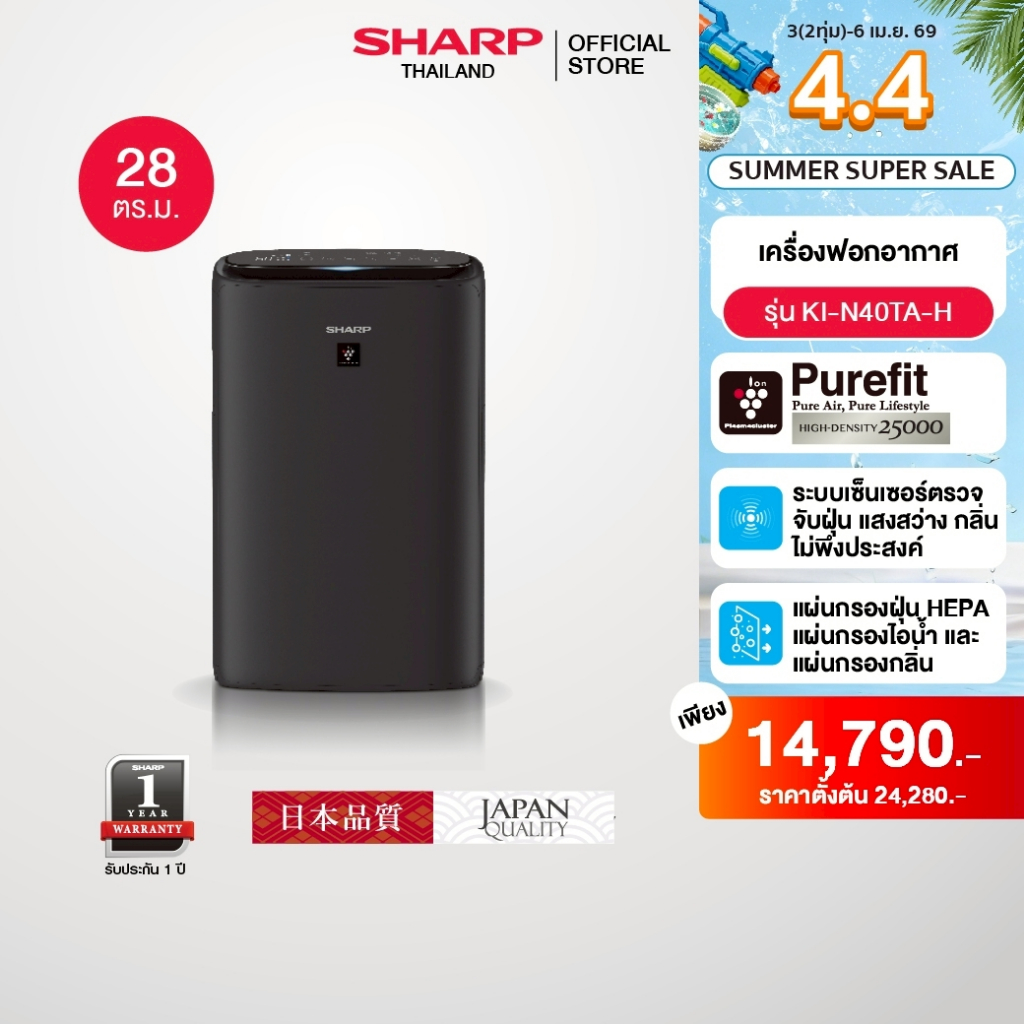 SHARP Air Purifier เครื่องฟอกอากาศระบบไอน้ำ รุ่น KI-N40TA ขนาด 28 ตร.ม