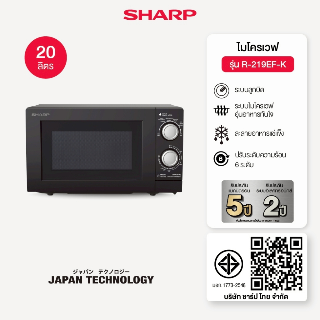 SHARP Microwave ไมโครเวฟ Compact Solo รุ่น R-219EF(K) ขนาด 20 ลิตร