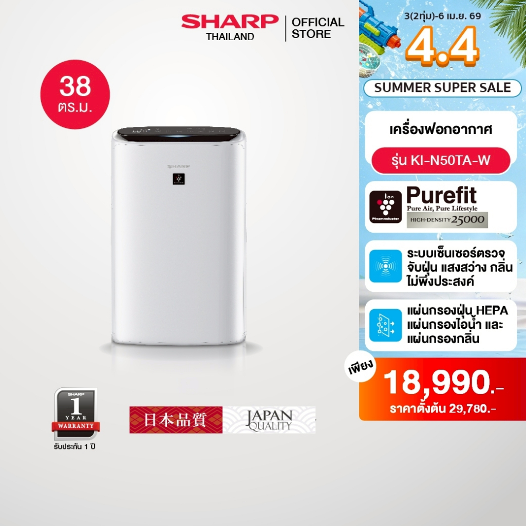 SHARP Air Purifier เครื่องฟอกอากาศระบบไอน้ำ รุ่น KI-N50TA-W ขนาด 38 ตร.ม