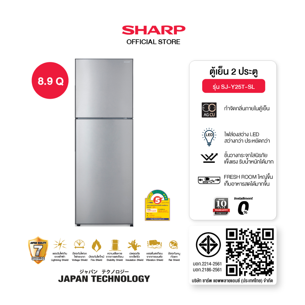 SHARP ตู้เย็น 2 ประตู ขนาด 7.9 - 8.9 คิว รุ่น SJ-Y22T-SL ,SJ-Y25T-SL สีเงิน