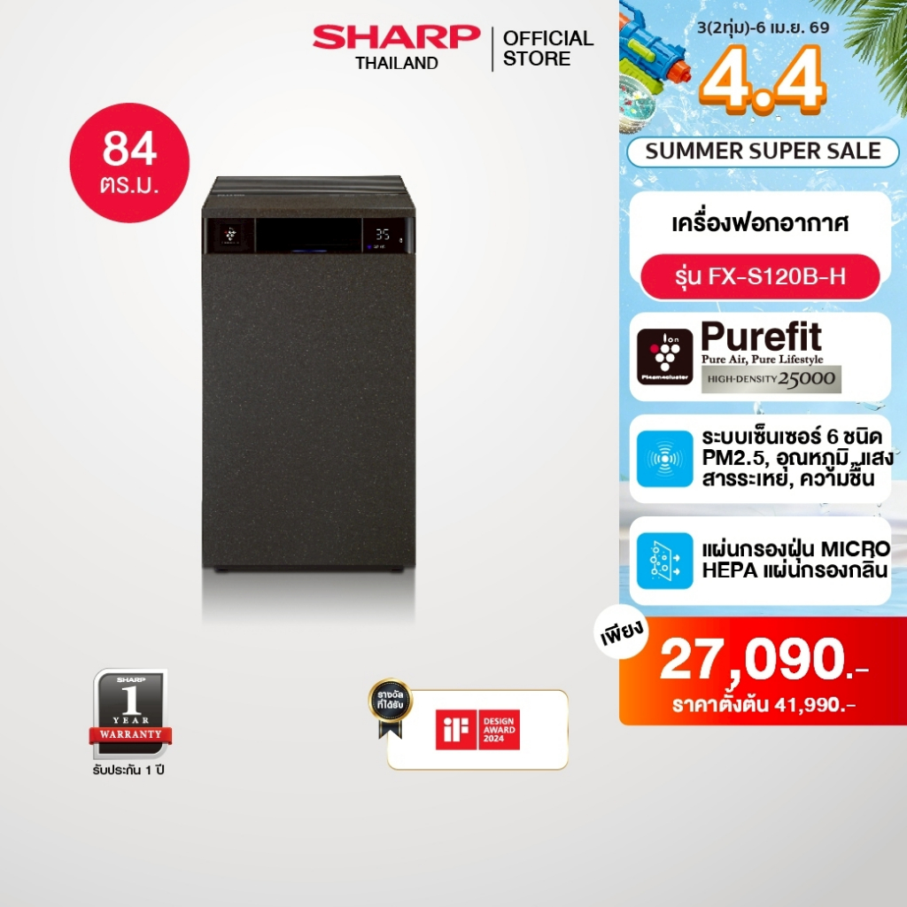 SHARP Air Purifier เครื่องฟอกอากาศ รุ่น FX-S120B-H / FX-S120B-W ขนาดห้อง 84 ตร.ม