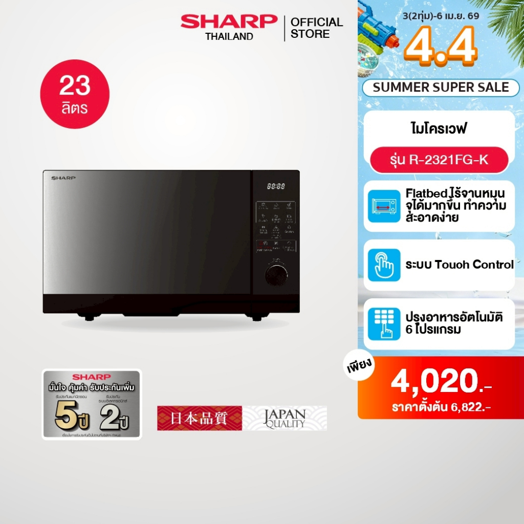 SHARP Microwave Flatbed ไมโครเวฟ รุ่นไร้จาน รุ่น R-2321FG-K ขนาด 23 ลิตร