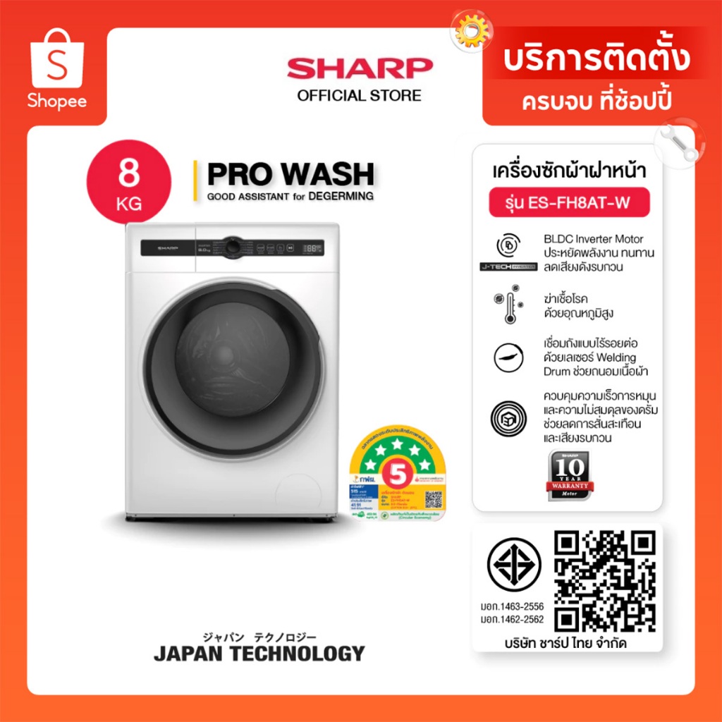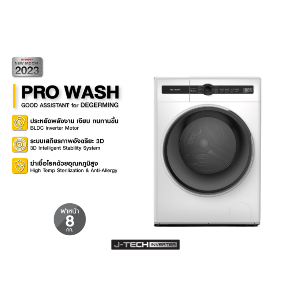 SHARP เครื่องซักผ้า ฝาหน้า J-Tech Inverter ขนาด 8 - 10 Kg รุ่น ES-FH8AT-W ,ES-FH10AT-W