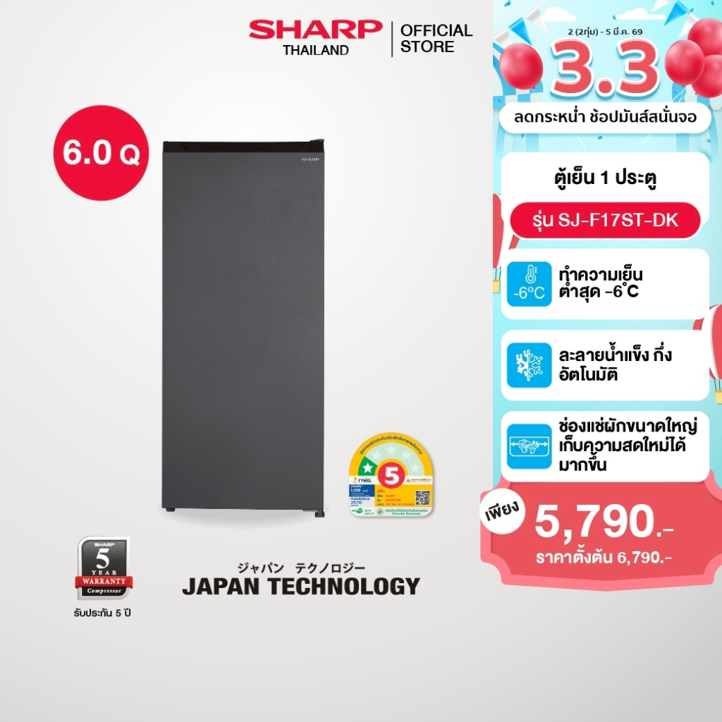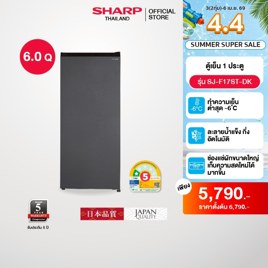 SHARP ตู้เย็นประตูเดียว Mini-elegant Freezer 5.4 - 6 คิว สีเทาเข้ม /สีเงิน รุ่น SJ-F15ST ,SJ-F17ST