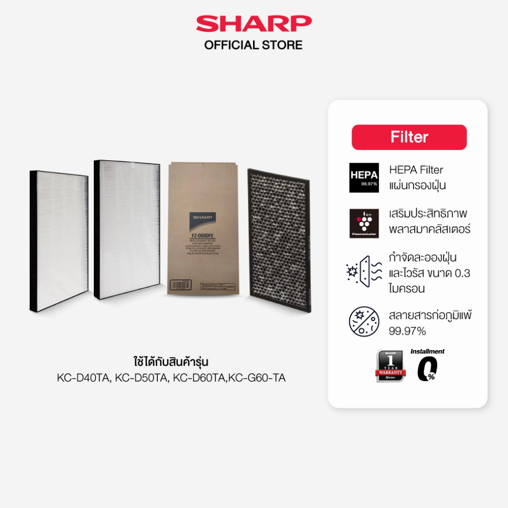 SHARP Filter แผ่นกรองฝุ่น/กรองกลิ่น รุ่น FZ-D40DFE /D40HFE /D60DFE /D60HFE