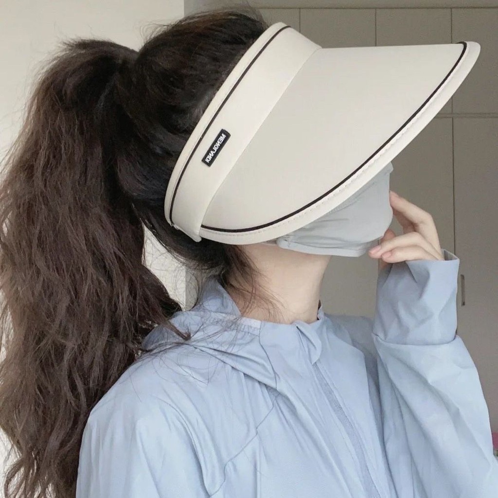 YJ New sun hat can roll large eaves all summer female sun protection hat hollowed out beach cycling sun shade empty top