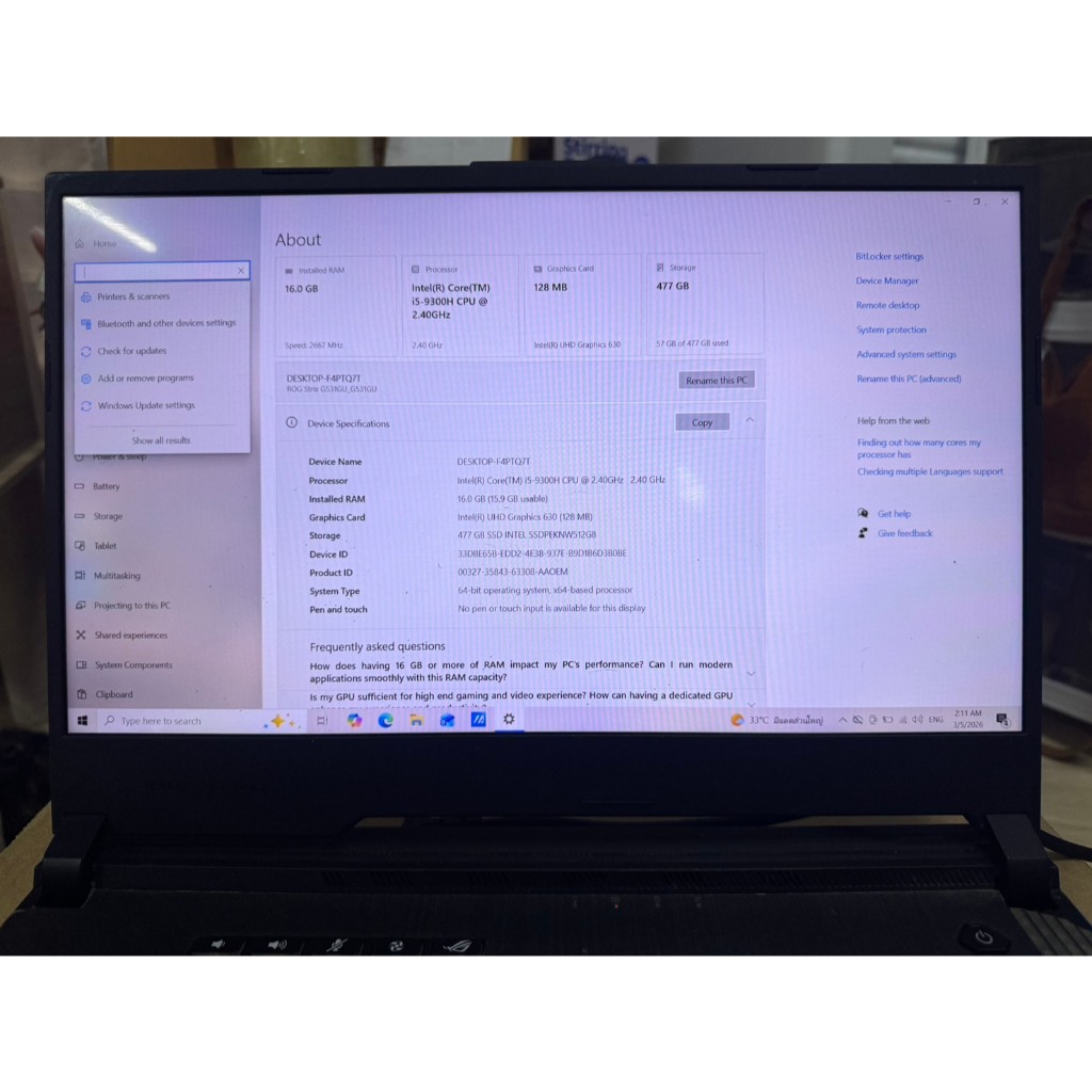 asus rog strix g g531gu al060t อ่านรายละเอียดก่อนสั่ง ขายตามสภาพ ใช้งานไดเปกติ ไม่เจอการ์ดจอแยก