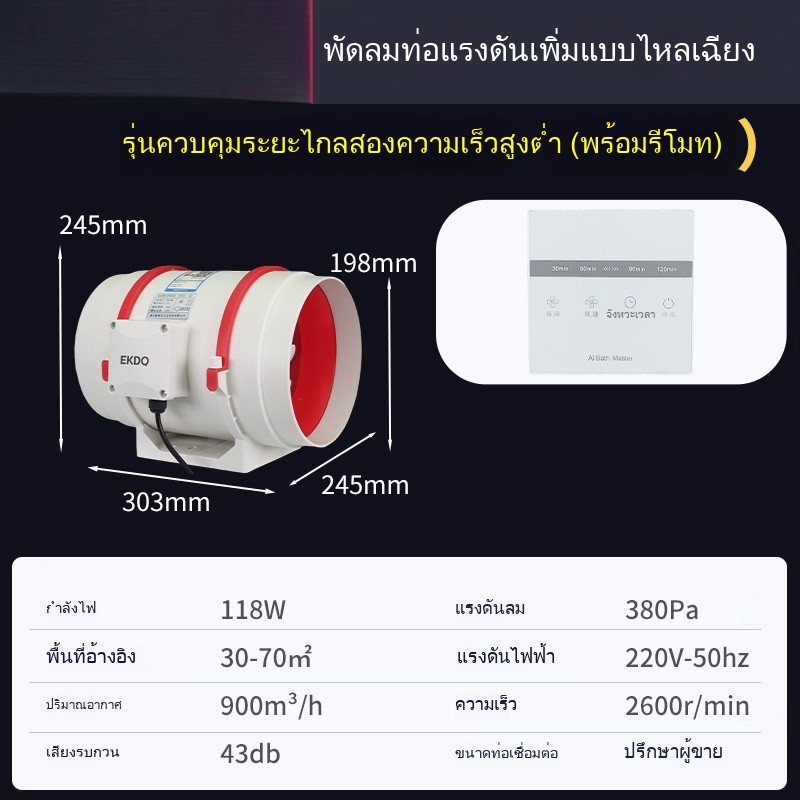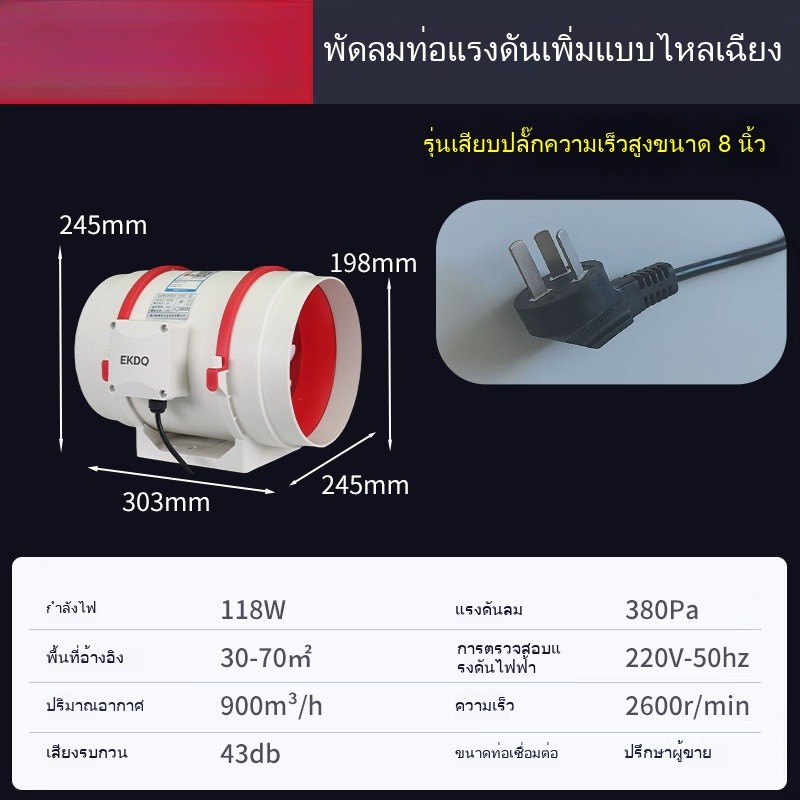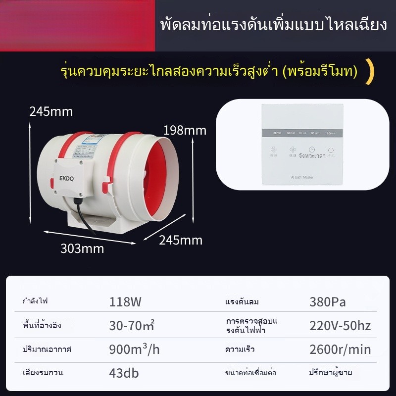 พัดลมท่อแบบกลมแรงดันสูง ไร้เสียง สำหรับห้องน้ำและครัว ดูดกลิ่นและระบายอากาศได้ดีเยี่ยม ZCQ5